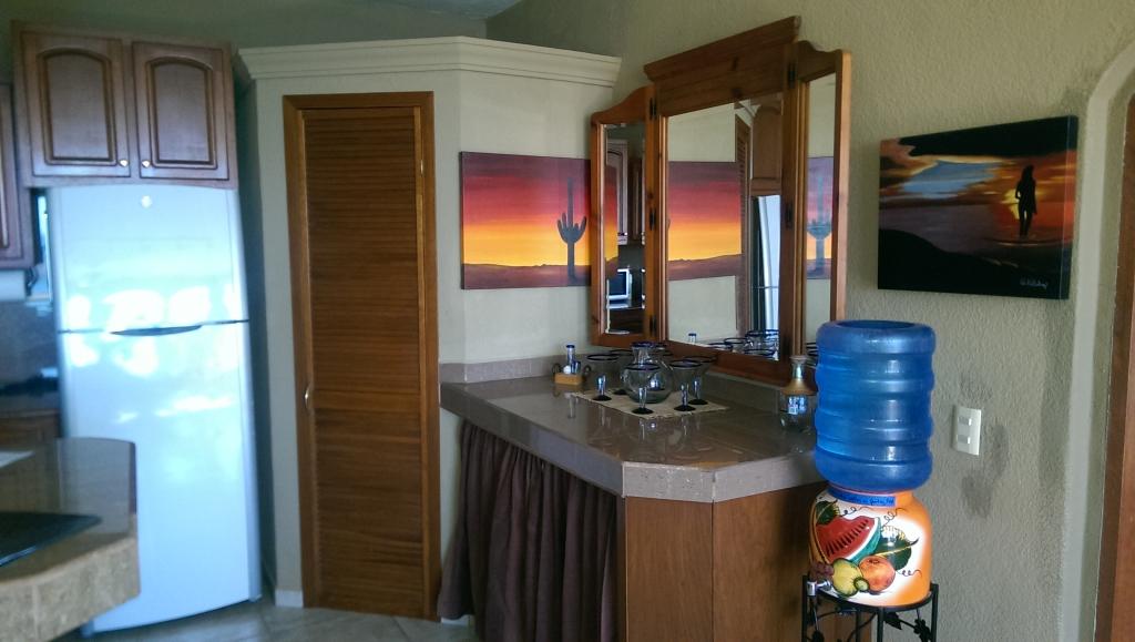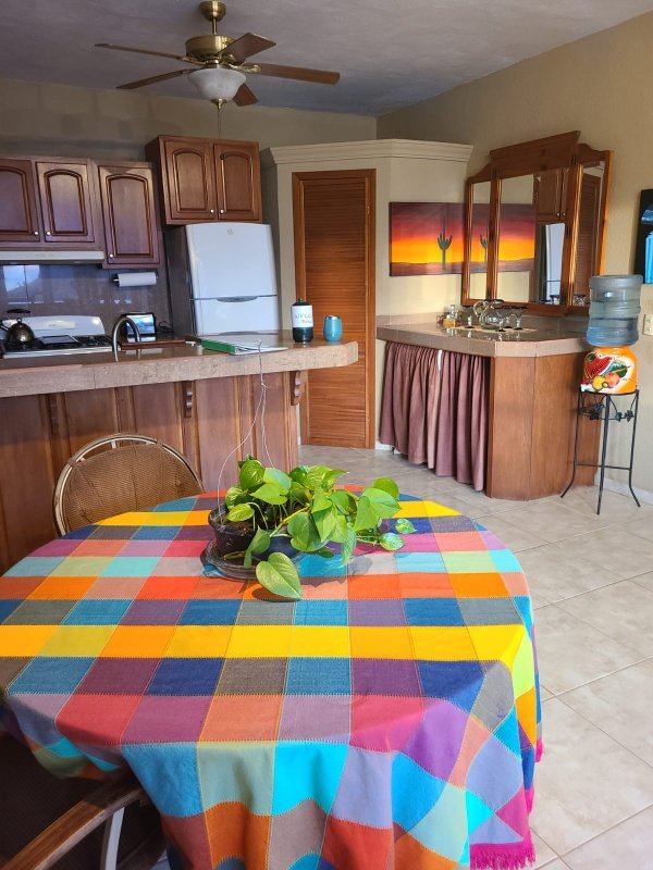 Casita de los Cocos, Beautiful House rental in San Carlos has 1 bedrooms, 1 bathrooms, 2 sleeps, 90 minimum stay House for rent in San Carlos Sonora with the amenities and near by attractions , Air Conditioning, Paper Towels, Beach View, Deck/Patio, Free WiFi, Full Kitchen, Heating, Linens Provided, Managed by Owner, No Pets Allowed, Non-Smoking, Porch / Veranda, Towels Provided, Water View, Wireless Internet, Washing Machine, Kitchen, Fire extinguisher, No parties/events, Smoke detector, Carbon-monoxide detector, Exterior lighting, Mountain View, Blender, Microwave, Cable/Satellite TV, Outdoor Grill, Television, Ceiling Fans, Freezer, Oven, Toaster, Coffee Maker , Hair Dryer , Refrigerator, Washer/Dryer , Dishes & Utensils, Iron & Board , Stove, Dishwasher, Coffee Grinder, Heater, First-aid kit, Clothes Dryer, Dining Area, Basic Soaps, Toilet Paper, Living Room, Kettle, Shampoo, Hangers, Ironing BoardBowsprit bar with stools & view, under the house in the garden area
