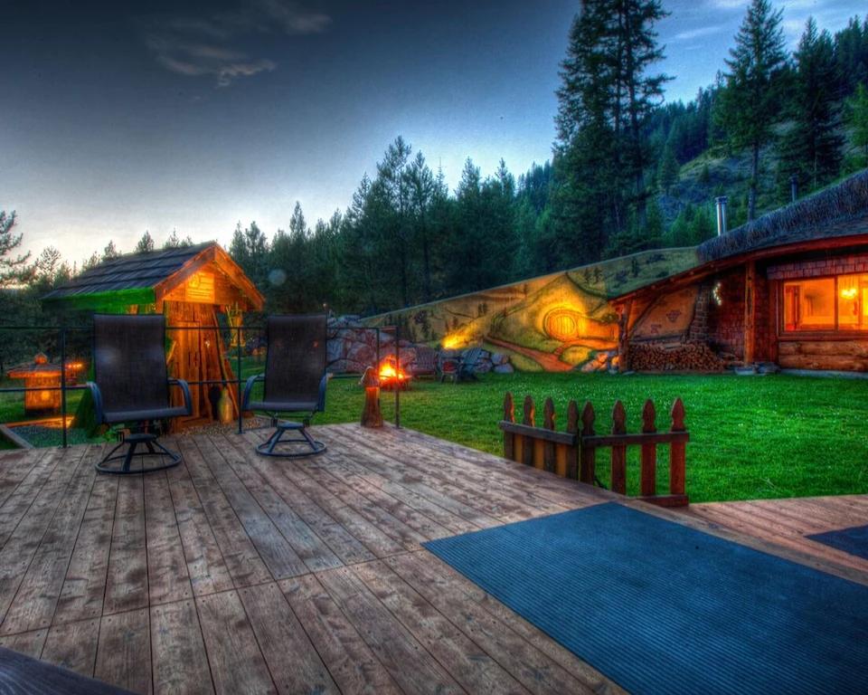 The Shire of Montana... a luxury Vacation Rental, Beautiful Cottage rental in Trout Creek has 2 bedrooms, 1 bathrooms, 3 sleeps, 2 minimum stay Cottage for rent in Trout Creek Montana with the amenities and near by attractions , Air Conditioning, Children Welcome, Free WiFi, Heating, Internet, Kitchen, Linens Provided, Mountain View, No parties/events, No Pets Allowed, No Smoking, Paper Towels, Parking, Towels Provided, Washing Machine, Water View, Wheelchair Accessible, Wireless Internet, Basic Soaps, Cable/Satellite TV, Clothes Dryer, Coffee Maker , Dishes & Utensils, Dishwasher, DVD Player, Hair Dryer , Heater, Ice Maker, Iron & Board , Microwave, Outdoor Grill, Oven, Refrigerator, Shampoo, Stove, Telephone, Television, Toaster, Toilet Paper, Washer/Dryer Wifi speed 50+ Mbps, Pantry Items, Dining table, Golf, Fire pit, Books, Stereo, Video Library, EV car charger, No events allowed, Rural, Minimum Age Limit for Renters 13 -16 years and older, Troll mine with Troll house, Gandalf the Wizard figurine, Waterfall feature, Bilbo and Frodo Baggins homes, Multiple Hobbit, Fairy and Elf houses, Display of mushroom lights on Hobbit Lane, view of Whitepine Alpaca Ranch, Hand crafted furniture with one-of-a-kind murals of Hobbits, Troll bridge with Wishing Well. Also provided are a variety of props for picture taking including Gandalfs staff and hat, various pipes used by the dwarfs, Radagast hat and staff which really lights up along with the actual key to Erebor.
