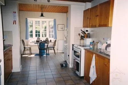 The cottage sleeps four/five. Upstairs are the bathroom and two pretty bedrooms built under the eaves – the views from the windows are lovely. Downstairs is a large lounge/dining room with colour TV with DVD and video, a study, shower room and loo, and a large kitchen with an eating area overlooking the garden. The kitchen is well equipped with cooker, microwave, fridge/freezer, washing machine and tumble dryer.