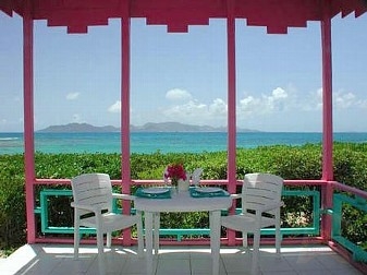 La Petite Maison d\'Amour: Unique West Indian designed 1 BR house rentals overlooking four islands sits 40\' from the water\'s edge. Anyway of where you are, even including the glass block shower and toilet (!), you have spectacular views from the rentable first floor.