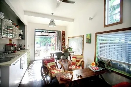 2 Bedrooms House Wild Byron, Beautiful House rental in Byron Bay has 2 bedrooms, 2 bathrooms, 4 sleeps, 1 minimum stay House for rent in Byron Bay Australia with the amenities and near by attractions , Air Conditioning, Blender, Microwave, Telephone, Cable/Satellite TV, DVD Player, Outdoor Grill, Television, Ceiling Fans, Freezer, Oven, Toaster, Coffee Maker, Hair Dryer, Refrigerator, Washer/Dryer, Dishes & Utensils, Iron & Board, Stove, Dishwasher, Coffee Grinder, Heater, First-aid kit, Clothes Dryer, Ice Maker, Dining Area, Basic Soaps, Toilet Paper, Living Room, Kettle