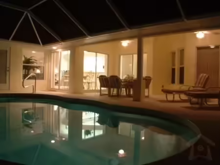 Enjoy our eco-friendly solar heated SW facing private pool (overlooking Pine Trees, Golf Course and Lake), pool deck (lanai) which is fully screened and equipped with loungers, table, chairs, gas BBQ, ceiling fans and lighting (including pool lighting).