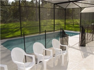 Six total bedrooms for plenty of space, two master bedrooms for privacy, and a private pool with southern exposure to a forest preserve makes this wonderful home truly exceptional. Perfectly situated for magical vacations at Disney - closer to the parks and attractions...just 2 traffic signals away! Located in the select Emerald Island Resort style community, your family will be less than 2 miles from Disney – no congested motorways to take time away from your enjoyment! Our 6 bedroom 3½ bath vacation home is beautifully furnished and wonderfully spacious. We have equipped our home to meet every need that you may have while visiting the theme parks and attractions of central Florida. Sleeping accommodations for 14 people includes 2 master suites (each with a Queen-size bed), with spacious en-suite bathrooms, dressers, night-stands, walk-in closet space, radio/alarm and a TV. A further bedroom has another queen-size bed, dresser, night-stand and closet space. The heated, South facing screened pool looks out onto secluded and private woodland to the rear, and guarantees fun in the sunshine and the perfect spot to soak in the rays or splash into the cooling waters.