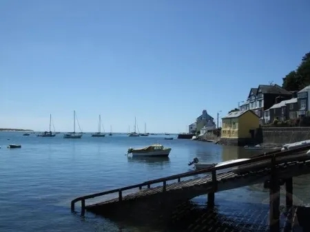 The kitchen area is hand-crafted with solid wood worktops and a dining table. Windows along the sea-side wall give mesmerising views of everything from the never-ending tidal changes, to the antics of the Outward Bound students. The living area is comfortably furnished with a leather double sofa-bed for additional guests. The stunning feature of this room is the expansive bay window with french doors, giving an amazing view across the estuary and out to sea.