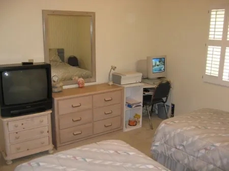 This beautiful Phoenix Arizona vacation rental condo unit features: 2 Bedrooms and 2 full Bathrooms. New King Size Bed and large TV in Master Bedroom with walk-in closet. Baths and toilets separate from sinks and vanities. Two twin size beds in second master Bedroom. Computer, printer and scanner. Hi Speed Cable Internet Access on New Computer. Ceramic tiled balcony with BBQ overlooking city park. Porcelain tile in all common areas. Living room has a La-A-Boy queen size pull out couch. La-Z-Boy Love seat with 2 flip up foot rests. New fridge, stove, dishwasher, microwave, water filter and toaster oven. Central air conditioning. All rooms have ceiling fans. 42\" LCD TV plus a 25\" TV, DVD Player, VCR, Digital Cable TV, and a music stereo. Fully Furnished and equipped with all kitchen utensils and sheets and towels. 6.0 Ghz dual handset cordless phone with answering. Machine and headset.