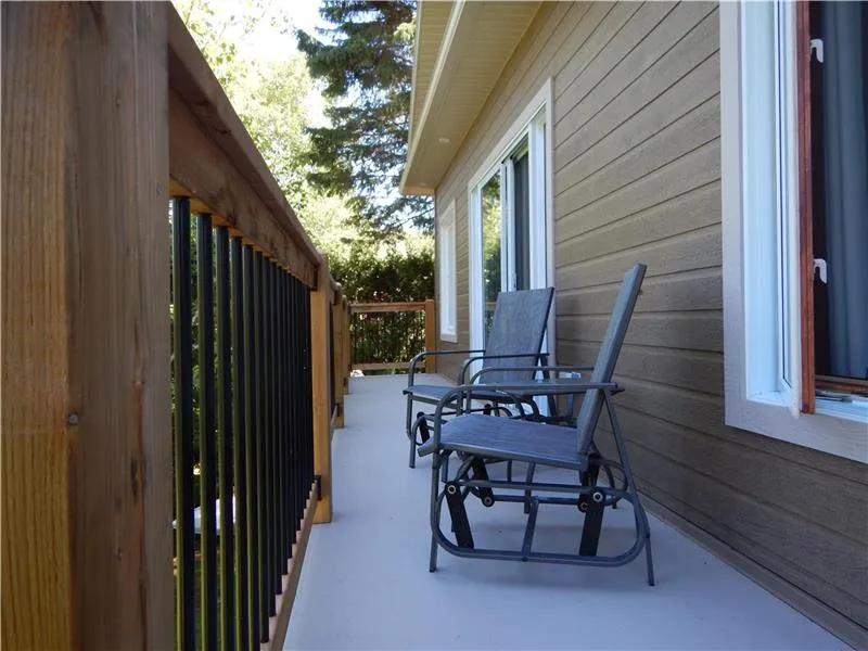 This 2 BR Holiday Rental Travel House like cottage, that fronts Lake Duhamel, can accommodate seven guests comfortably. There are two spacious bedrooms and a naturally lighted open concept living room, dinning room,
