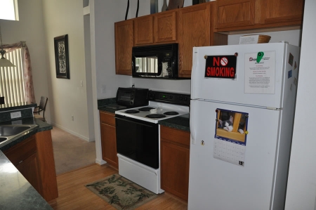 The family room is also located off kitchen area. It features a 32" color television with digital cable and VCR/ DVD combo, so you can watch movies from our collection. You also have wireless internet throughout the entire house, and free local and long distance calling privileges. There is a queen size sleeper sofa in the family room and an exit out to your private screened in pool. The pool gets plenty of sun, so be sure to bring your sunblock. Heat is available upon request for an additional charge.