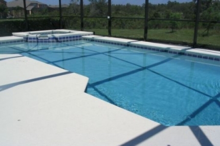 With wonderful views across the trees and not overlooked this is the perfect place to relax day and night. Planting down each side of the pool screen adds to both the views and privacy. The pool is larger than standard at 30' x 15' and has a luxury Spa (Jacuzzi) built into the corner. The extended deck has plenty of room for sunbathing. The Pool area is fully screened by fine mesh to keep insects and animals out. The screen in no way affects a good sun tan! For those traveling with young children you will be pleased to know that there is a 4' safety fence between the pool and the main building - this is removable if not required, plus the patio door is alarmed. The pool can be heated if required and this is recommended from Nov to March a pool blanket on a roller ensures the pool keeps hot over the cooler months. Sun loungers and a Patio Table and Chairs are provided plus a large Sun Umbrella. There is a covered lanai (patio) complete with ceiling fan and light for those who prefer some shade and lovely views to the rear of the property. The pool features multi colour changing underwater lighting for that night time dip on your return from the theme parks, or why not relax in our hot bubbly Spa with a (plastic) glass of wine and watch Disney's Magic Kingdom fireworks over the tree tops.