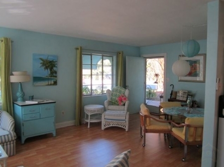 Grandma's Bungalow is a great Indian Rocks Beach vacation rental - located across the street from SunRise and SunSet Villas and Cozy cottage. It is updated, light, bright, clean and has one of the best locations in Indian Rocks Beach. A peaceful neighborhood setting away from the Gulf Blvd. traffic and congestion, yet only a 3 to 4 minute stroll to the 20th Avenue public beach access. This is a street level home (no stairs to climb). This is also a pet-friendly home. No smoking allowed indoors.