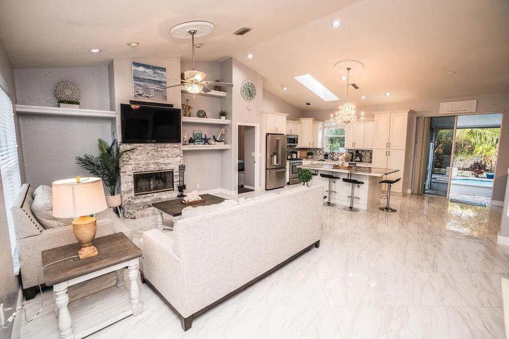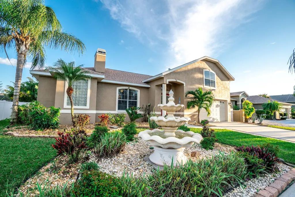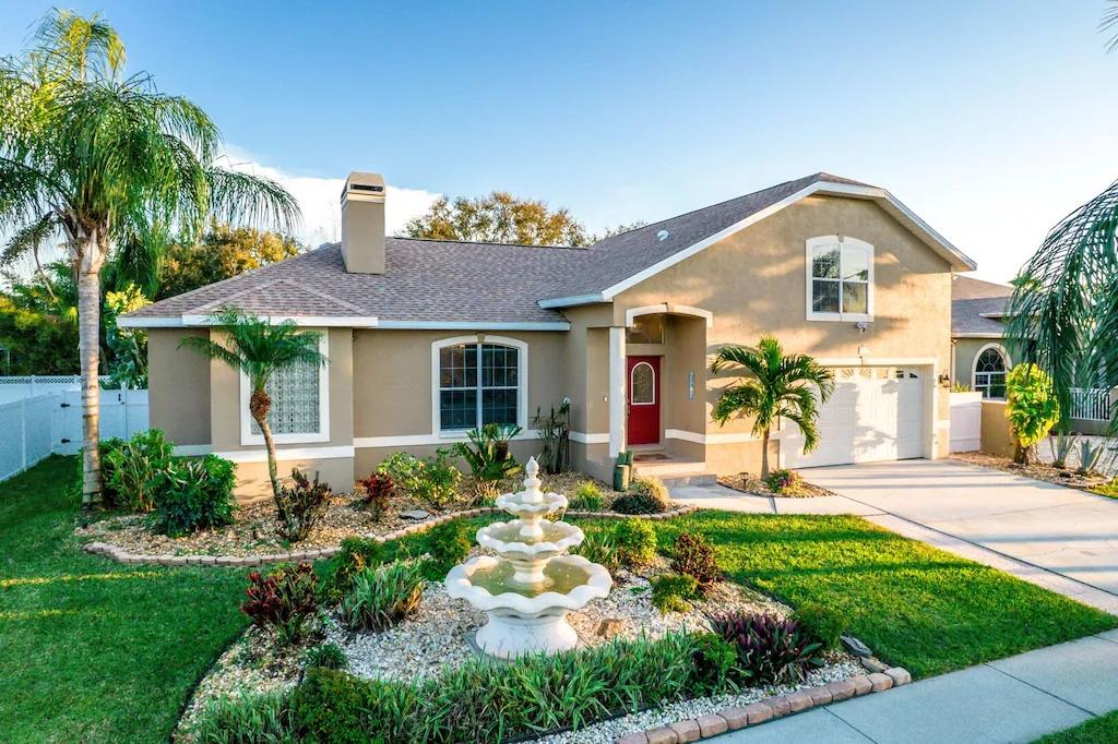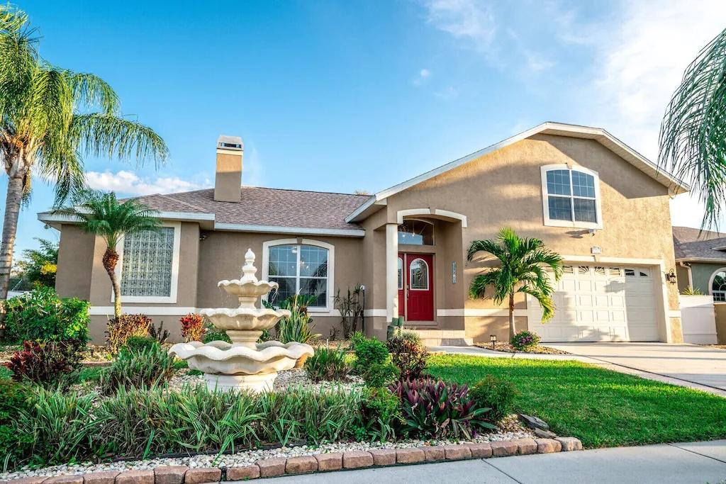 The fountain house , Beautiful House rental in Apollo Beach has 6 bedrooms, 2.5 bathrooms, 12 sleeps, 6 minimum stay House for rent in Apollo Beach Florida with the amenities and near by attractions , Air Conditioning, Beach Chairs, Bicycles, Free WiFi, Garage, Heated Pool, Heating, Internet, Kitchenette, Linens Provided, Managed by Owner, Parking, Pet Friendly, Pool Table, Private Pool, Screen Porch, Towels Provided, Wheelchair Accessible, Wireless Internet, Washing Machine, Kitchen, Children Welcome, Swimming pool, Fire extinguisher, No Smoking, No parties/events, Smoke detector, Carbon-monoxide detector, Exterior lighting, Blender, Microwave, Outdoor Grill, Television, Ceiling Fans, Oven, Toaster, Coffee Maker , Hair Dryer , Refrigerator, Washer/Dryer , Dishes & Utensils, Iron & Board , Stove, Dishwasher, Heater, First-aid kit, Clothes Dryer, Ice Maker, Dining Area, Basic Soaps, Toilet Paper, Living Room, Kettle, ShampooPantry Items, Kitchen island, Kitchen island, Outdoor Pool, Outdoor Furniture, Beach Towels, Games(board games), Books, Smart TV, Childs Highchair, Travel crib, Deadbolt lock, Emergency exit route, Fenced pool, Fenced yard, Golf Course Front, Minimum Age Limit for Renters 25, Pets allowed: 1 dog less than 20lbs