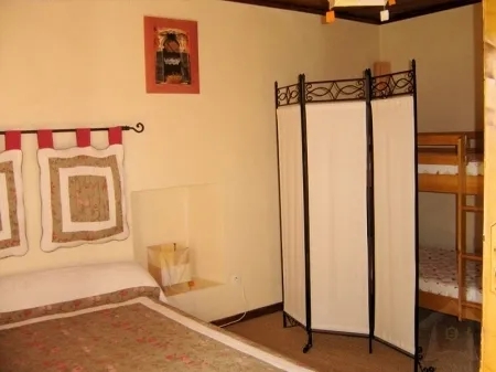 Exceptional location at the entrance of the gorge Sweet. Ardechoise restored old farmhouse on 8 hectares of land. Two bedroom cottage 4 / 5 pers. independent. Enclosed terrace with garden, deck, electric barbecue. Kitchen with stove, microwave + microwave, fridge-freezer. Living room with sofa, TV. A room with 1 bed 140 + separate corner with bunk beds 90. Bathroom with shower. Separate WC. Installation and new equipment. Central heating. Loan of cot and highchair. Commerce 2.5 km. River at 300 m and 1 km swim. Many marked hiking trails.