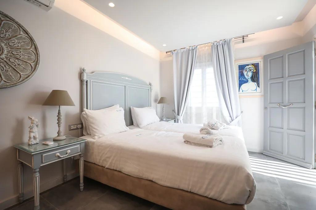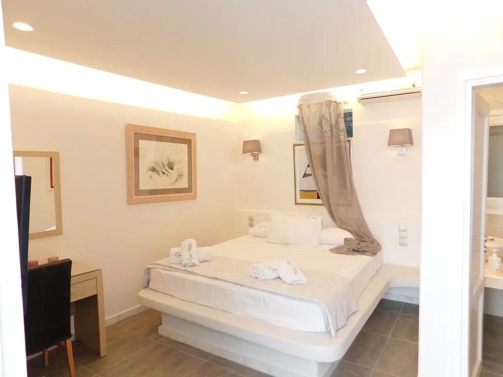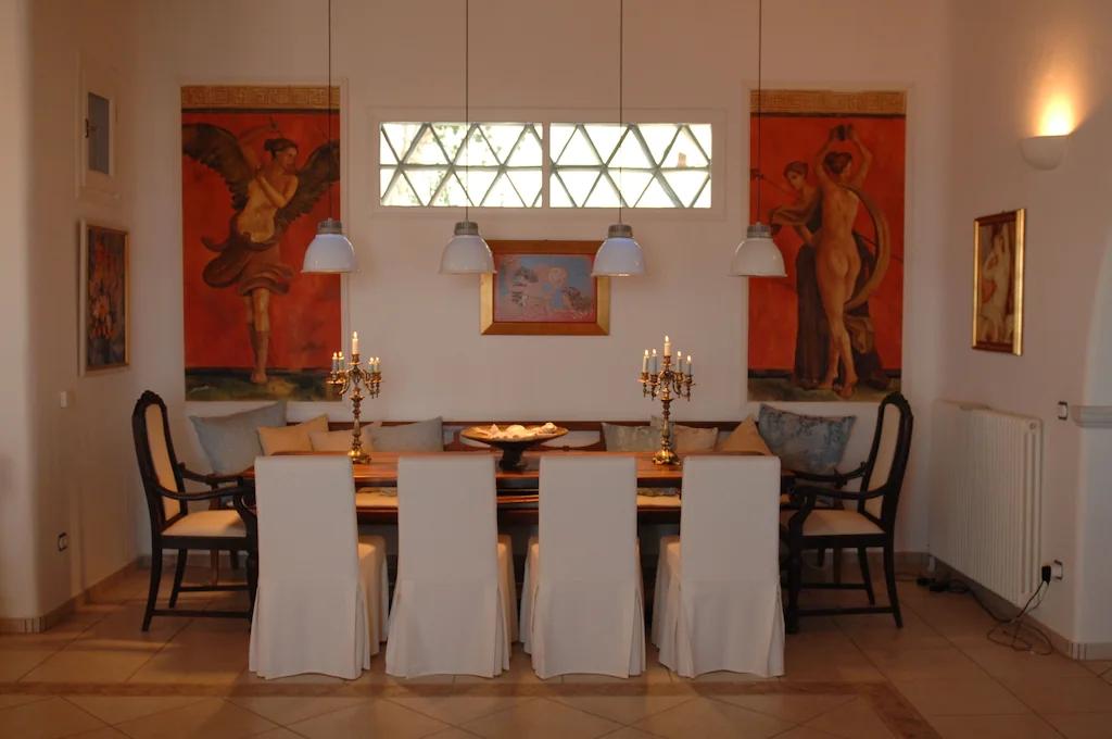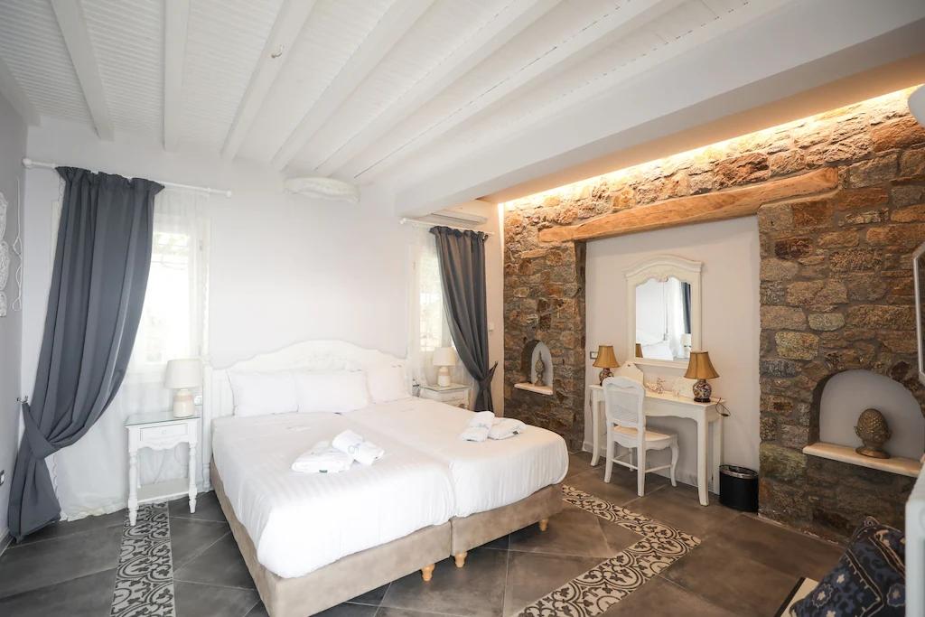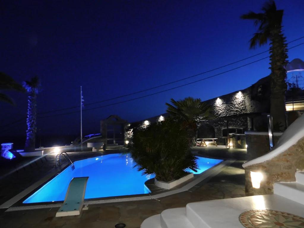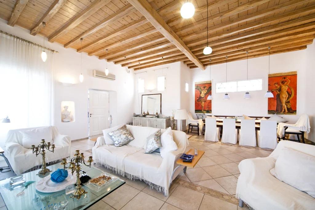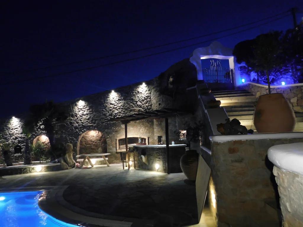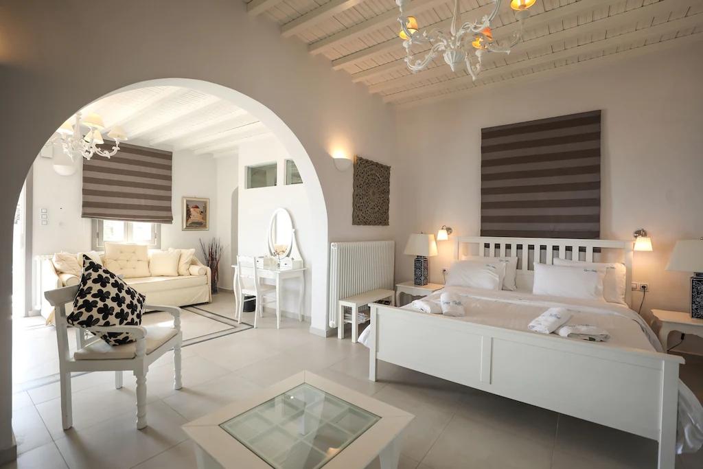 Grand Luxury Villa Ozar, Beautiful Villa rental in Mykonos has 8 bedrooms, 7 bathrooms, 16 sleeps, 1 minimum stay Villa for rent in Mykonos Greece with the amenities and near by attractions , Air Conditioning, Balcony, Children Welcome, Free WiFi, Kitchen, Kitchenette, Parking, Pet Friendly, Swimming pool, Televisiongreen garden, BBQ, Smoking allowed outside(Garden area), Events allowed birthday parties- family gatherings- weddings(Maximum event attendees: 99)