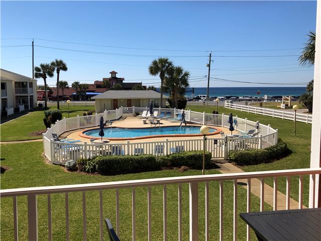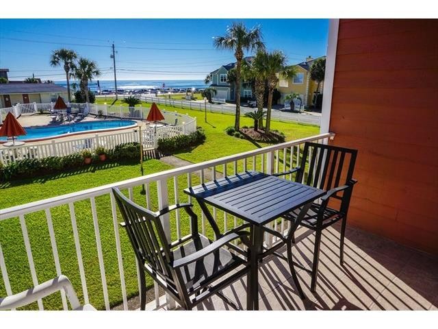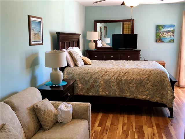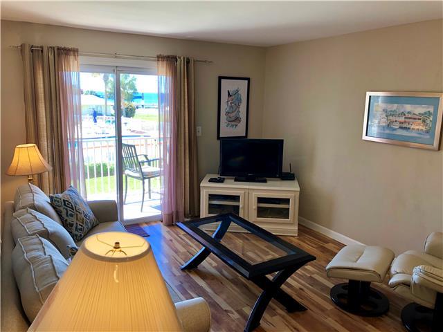 This condo sleeps 4 and overlooks the Courtyard, Pool, and Beautiful Emerald Green Waters dancing in the background.