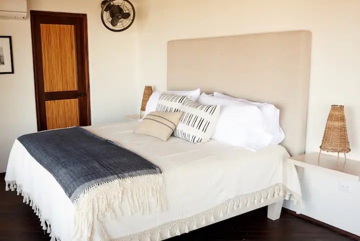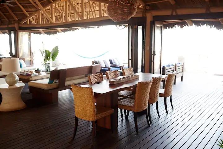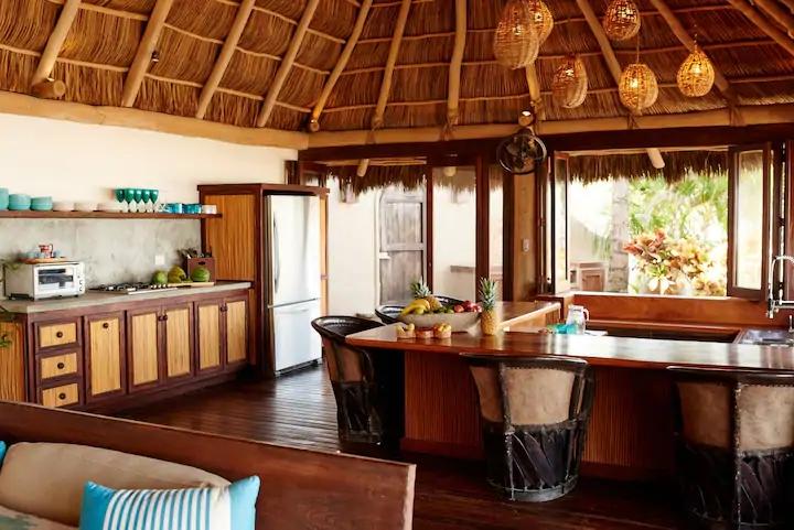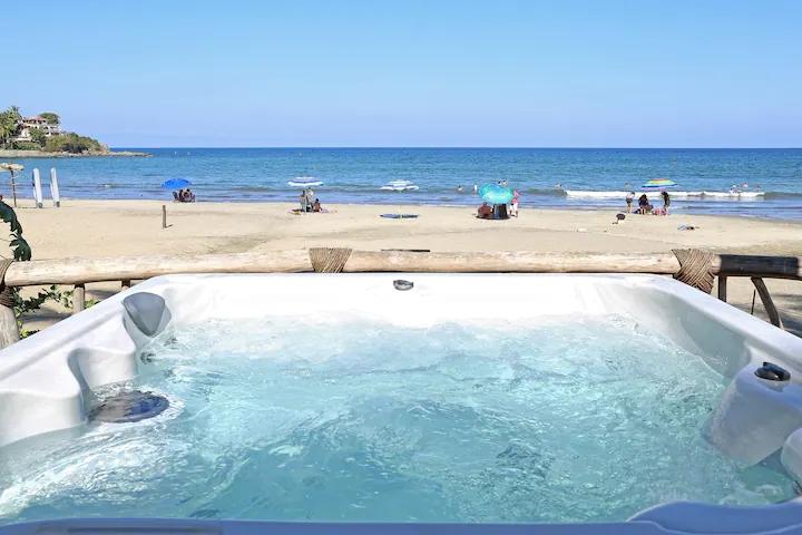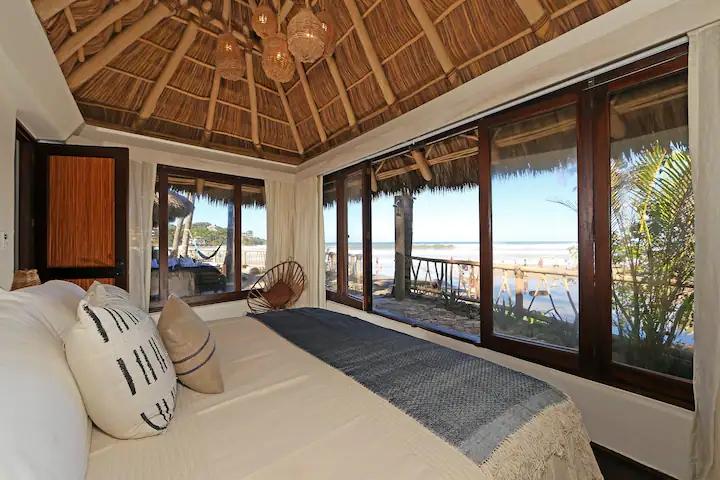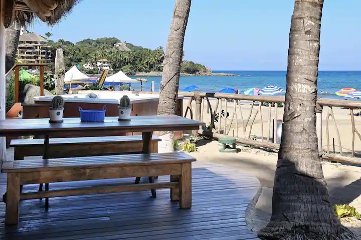 Luxury beachfront bungalow, Beautiful Bungalow rental in Sayulita has 3 bedrooms, 3 bathrooms, 6 sleeps, 1 minimum stay Bungalow for rent in Sayulita Nayarit with the amenities and near by attractions , Air Conditioning, Balcony, Beach View, Beachfront, Deck/Patio, Fire extinguisher, Free WiFi, Hot Tub, Kitchen, No parties/events, No Pets Allowed, No Smoking, Parking, Towels Provided, Basic Soaps, Cable/Satellite TV, Coffee Maker , Hair Dryer , Hangers, Iron & Board , Refrigerator, Shampoo, Stove, Toilet PaperPrivate hot tub, Hot water, bed sheets, Room-darkening shades, TV with standard cable/satellite, Travel cot, Children’s books and toys, Babysitter recommendations, Dedicated workspace, Cooking basics(Pots and pans- oil- salt and pepper), Dishes and silverware(Bowls- chopsticks- plates- cups- etc.), Garden, Free parking on premises, Private hot tub, Luggage drop-off allowed, Host greets you, Long-term stays allowed(Allow stays of 28 days or more)