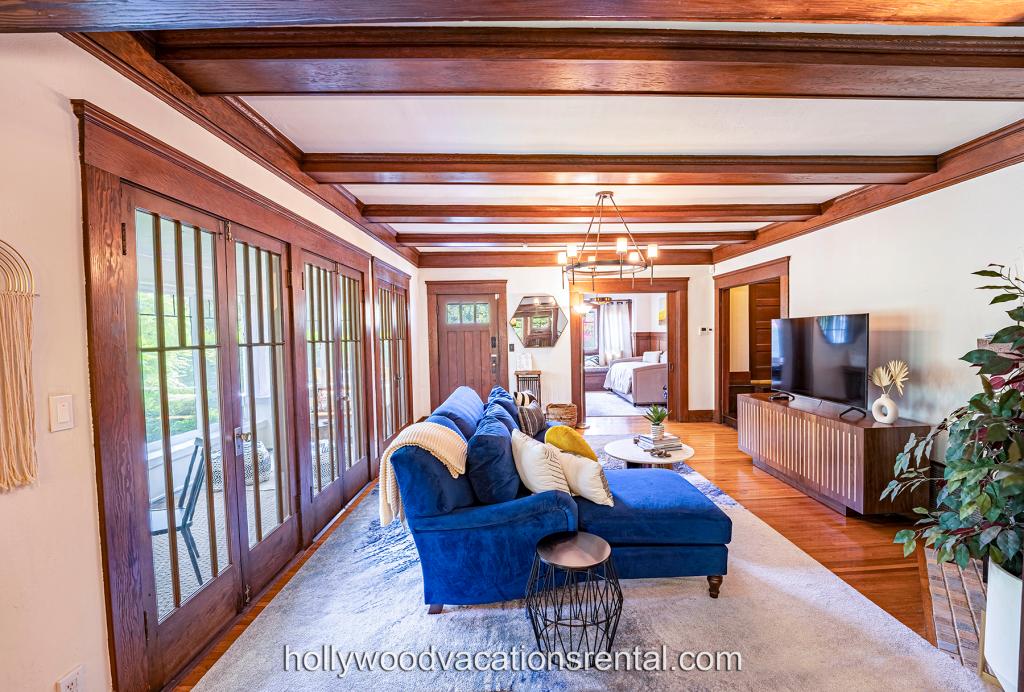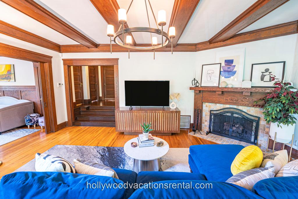 Stunning 3-Bedroom Craftsman w/ Indoor Fireplace, Beautiful House rental in Los Angeles has 3 bedrooms, 2 bathrooms, 7 sleeps, 3 minimum stay House for rent in Los Angeles California with the amenities and near by attractions , Air Conditioning, Paper Towels, Deck/Patio, Fireplace, Free WiFi, Full Kitchen, Heating, Linens Provided, No Pets Allowed, Non-Smoking, Parking, Porch / Veranda, Towels Provided, Wireless Internet, Washing Machine, Kitchen, Children Welcome, Children allowed, No Smoking, No parties/events, Smoke detector, Carbon-monoxide detector, Blender, Microwave, Television, Freezer, Toaster, Coffee Maker , Refrigerator, Washer/Dryer , Dishes & Utensils, Stove, Dishwasher, Heater, Clothes Dryer, Dining Area, Basic Soaps, Toilet Paper, Living Room, Shampoo