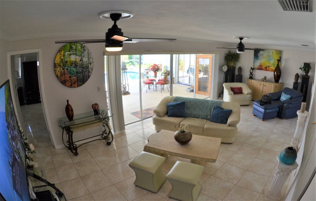 Waterfront Gulf access 3 bed. 3 bath Villa SUNSHINE, Sleep 7, Beautiful House rental in Cape Coral has 3 bedrooms, 3 bathrooms, 10 sleeps, 3 minimum stay House for rent in Cape Coral Florida with the amenities and near by attractions , Air Conditioning, Beach Chairs, Bicycles, Deck/Patio, Dock/Boat Slip, Free WiFi, Garage, Heated Pool, Heating, Internet, Lanai, Linens Provided, Managed by Owner, Non-Smoking, Outdoor Shower, Parking, Pet Friendly, Private Pool, Screen Porch, Towels Provided, Waterfront, Wireless Internet, Kitchen, Smoke detector, Blender, Microwave, Cable/Satellite TV, Outdoor Grill, Television, Ceiling Fans, Freezer, Oven, Toaster, Coffee Maker , Hair Dryer , Refrigerator, Washer/Dryer , Dishes & Utensils, Iron & Board , Stove, DishwasherLawn / garden, Boating(onsite), Canoeing(onsite), Children's Pool(onsite), Fishing(onsite), Jet Skiing(onsite), Kayaking(onsite), Grocery Store(< 1 mile), Gym/Fitness Center(< 1 mile), Live Entertainment(1 mile), Beach(2 miles), Movie Theater(2 miles), Shopping Area(2 miles), Snorkeling(2 miles), Winery(2 miles), Ocean(3 miles), Volleyball Court(3 miles), Basketball Court(4 miles), Deep Sea Fishing(4 miles), Golf(4 miles), Park(4 miles), Tennis(4 miles), Sailing(5 miles), Water Park(5 miles), Windsurfing(5 miles), Casino(25 miles), Zoo(25 miles), SUN SPLASH WATER PARK located within 4 miles, 20 minutes with boat to the river.