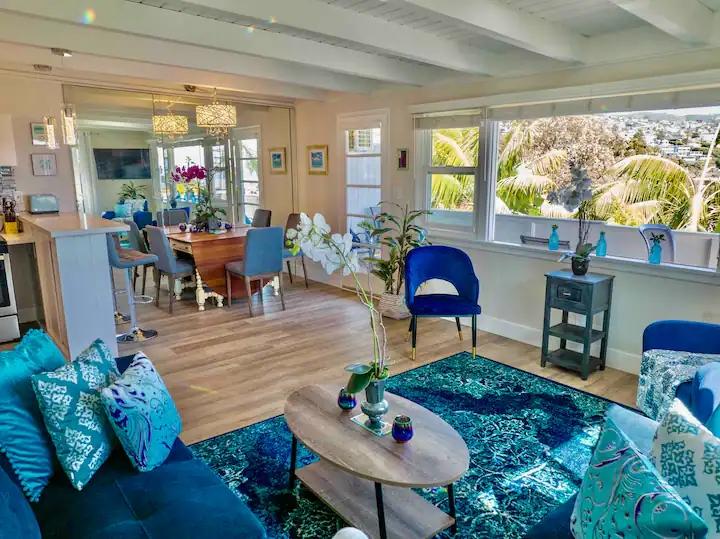 STUNNINGLY PERFECT @Beach ALL NEW REMODEL ++Galore, Beautiful Apartment rental in Laguna Beach has 2 bedrooms, 2 bathrooms, 6 sleeps, 14 minimum stay Apartment for rent in Laguna Beach California with the amenities and near by attractions , Air Conditioning, Balcony, Beach View, Carbon-monoxide detector, Deck/Patio, Free WiFi, Kitchen, No parties/events, No Smoking, Ocean View, Parking, Smoke detector, Washing Machine, Coffee Maker , Dining Area, First-aid kit, Hair Dryer , Outdoor Grill, Refrigerator, Antiquing, Basketball court, Bay/sound, Bird watching, Boating, Cycling, Duty free shops, Ecotourism, Fishing, fitness center, Gambling casinos, Golf, Health/beauty spa, Hiking, Horseback riding, Hospital, Jet skiing, Kayaking, laundromat, Mountain biking, Mountain climbing, Museums, Outlet shopping, Paddle boating, Parasailing, Rafting, Sailing, Scuba diving or snorkeling, Shopping, Snorkeling, Surfing, Swimming, Theme parks, Water parks, Water skiing, Water sports, Water tubing, Whale watching, Wildlife viewing, Wind-surfing, Winery toursCourtyard view, Beach access, Free parking on premises, Bay view, Dedicated workspace, HDTV with Amazon Prime Video- Fire TV- Netflix, Central air conditioning, Sea view, City skyline view, Garden view, Washing machine – In building, Dishes and silverware(Bowls- chopsticks- plates- cups etc.), Private patio or balcony, Garden, Outdoor dining area, BBQ grill, Long-term stays allowed(Allow stays of 28 days or more)