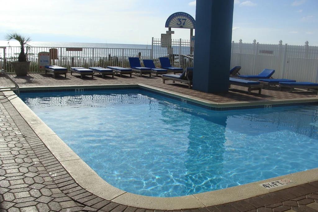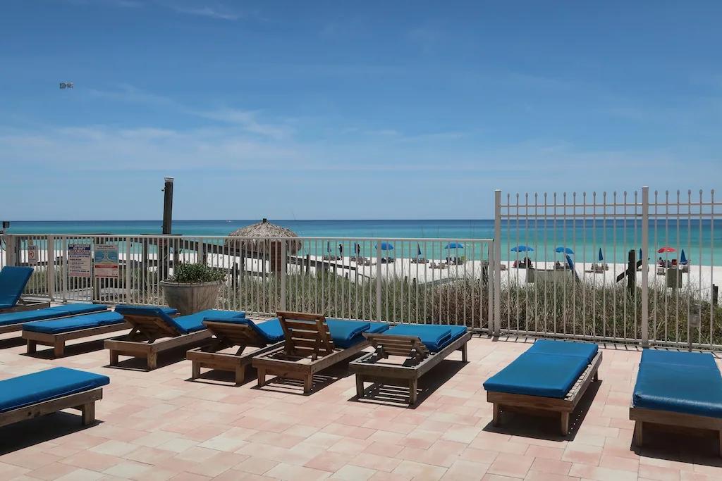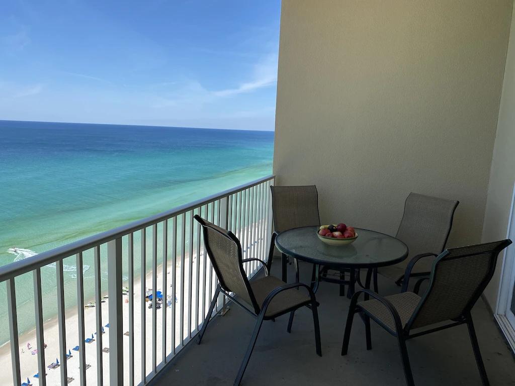 Ocean Front Luxurious Condo, 1,500ft with 3 bedrooms, Master on the Gulf, Beautiful Condo rental in Panama City Beach has 3 bedrooms, 2 bathrooms, 8 sleeps, 1 minimum stay Condo for rent in Panama City Beach Florida with the amenities and near by attractions , Air Conditioning, Balcony, Beachfront, Children Welcome, Communal Pool, Deck/Patio, Elevator, Exterior lighting, Fire extinguisher, Fitness Room , Free WiFi, Heated Pool, Heating, Internet, Kitchen, Linens Provided, No parties/events, No Pets Allowed, No Smoking, Oceanfront, Paper Towels, Parking, Smoke detector, Swimming pool, Towels Provided, Washing Machine, Waterfront, Wheelchair Accessible, Wireless Internet, Basic Soaps, Blender, Cable/Satellite TV, Clothes Dryer, Coffee Maker , Dining Area, Dishes & Utensils, Dishwasher, DVD Player, Hair Dryer , Heater, Ice Maker, Iron & Board , Microwave, Outdoor Grill, Oven, Refrigerator, Stove, Television, Toaster, Washer/Dryer Wifi speed 500+ Mbps, Travel crib, Pantry Items, Dining table, Outdoor Pool, Golf nearby, Water Sports Gear, Stereo, Video Library, Smart TV, Deadbolt lock, Beach, Minimum Age Limit for Renters 25