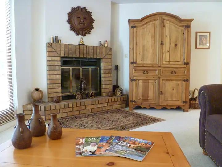 BELLA DIOSA , Beautiful House rental in Sedona has 2 bedrooms, 2 bathrooms, 4 sleeps, 30 minimum stay House for rent in Sedona Arizona with the amenities and near by attractions , Air Conditioning, Paper Towels, Deck/Patio, Free WiFi, Heating, Linens Provided, Managed by Owner, Parking, Porch / Veranda, Towels Provided, Wireless Internet, Washing Machine, Kitchen, Fire extinguisher, No Smoking, No parties/events, Smoke detector, Blender, Microwave, Cable/Satellite TV, DVD Player, Outdoor Grill, Television, Ceiling Fans, Freezer, Oven, Toaster, Coffee Maker , Hair Dryer , Refrigerator, Washer/Dryer , Dishes & Utensils, Iron & Board , Stove, Dishwasher, Coffee Grinder, Heater, Clothes Dryer, Dining Area, Basic Soaps, Toilet Paper, Living Room, Hangers, Swimming, Winery tours, Health/beauty spa, Shopping, Golf, Mountain biking, Rock climbing, fitness centerGolf course view, Garden view, Dedicated workspace, 2 Baths, Cleaning products, Antibacterial body soap, bed sheets, Extra pillows and blankets, Clothes storage- chest of drawers, Cooking basics, Dishes and silverware, Wine glasses, Outdoor dining area, BBQ grill, Self check-in, Long-term stays allowed (Allow stays of 28 days or more), Fireplace inoperable, and Free parking on premises.