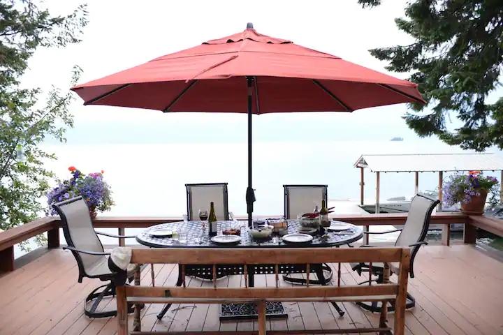 THE BEST OF MT! FLATHEAD LAKE LIFE!, Beautiful House rental in Lakeside has 3 bedrooms, 2.5 bathrooms, 8 sleeps, 1 minimum stay House for rent in Lakeside Montana with the amenities and near by attractions , Air Conditioning, Balcony, Carbon-monoxide detector, Deck/Patio, Fire extinguisher, Free WiFi, Heating, Hot Tub, Kitchen, Lake View, Linens Provided, No parties/events, No Pets Allowed, No Smoking, Parking, Smoke detector, Towels Provided, Washing Machine, Waterfront, Basic Soaps, Cable/Satellite TV, Coffee Maker , First-aid kit, Hair Dryer , Hangers, Iron & Board , Microwave, Refrigerator, Shampoo, Toilet Paper, Washer/Dryer Free parking on premises, Security cameras on property, Hot water, bed sheets, Room-darkening shades, Travel cot, High chair, Cooking basics(Pots and pans- oil- salt and pepper), Dishes and silverware(Bowls- chopsticks- plates- cups- etc.), Private patio or balcony, Garden, BBQ grill, Long-term stays allowed(Allow stays of 28 days or more), Host greets you