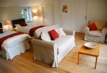 The cottage consists of a kitchenette (breakfast table, kettle, toaster, microwave, fridge), a beautifully furnished twin room with sitting area with armchair and sofa bed, and a luxurious bathroom with walk-in shower. We provide all the ingredients for a deluxe continental breakfast, which you can prepare at your convenience in your own kitchenette.