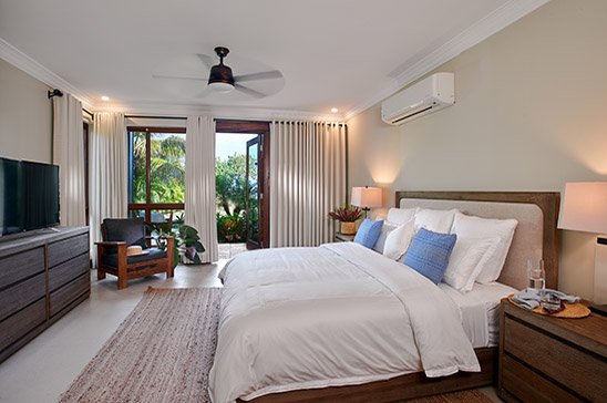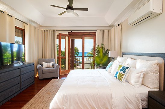 Five (5) bedrooms are upstairs, including a spacious master bedroom, the double bunk-bed room, and two (2) additional bedrooms are downstairs, including a second master bedroom with 4-poster bed. All bedrooms have air-conditioning, ceiling fans, safes, and Smart TVs with internet for streaming.