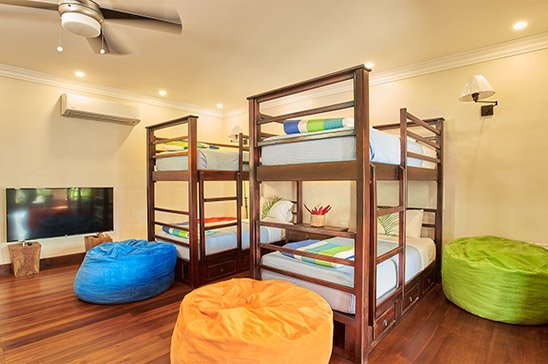 2 Bunk Beds (4 Beds Total), 4 Large Plush Floor Cushions, A/C, Ceiling Fan, Flat Screen TV
