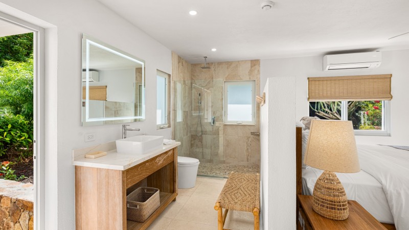 The Great Room overlooks a spectacular infinity-edge salt pool with captivating views of various species of exotic palm trees, gorgeous giant boulders, flowers & water views of Sir Francis Drake Channel & the island of Tortola. Beso del Sol is a very short walk, only footsteps away from Spring Bay Beach. Grab a beach chair, snorkel equipment & enjoy the day at our beautiful private beach.