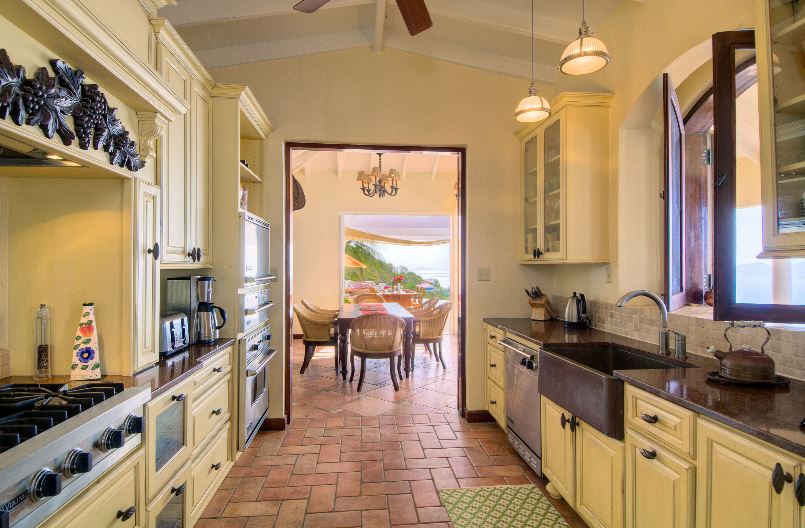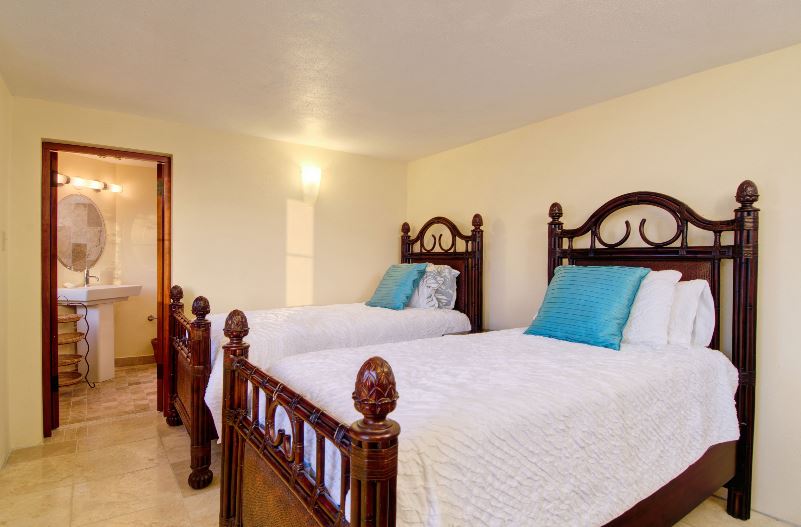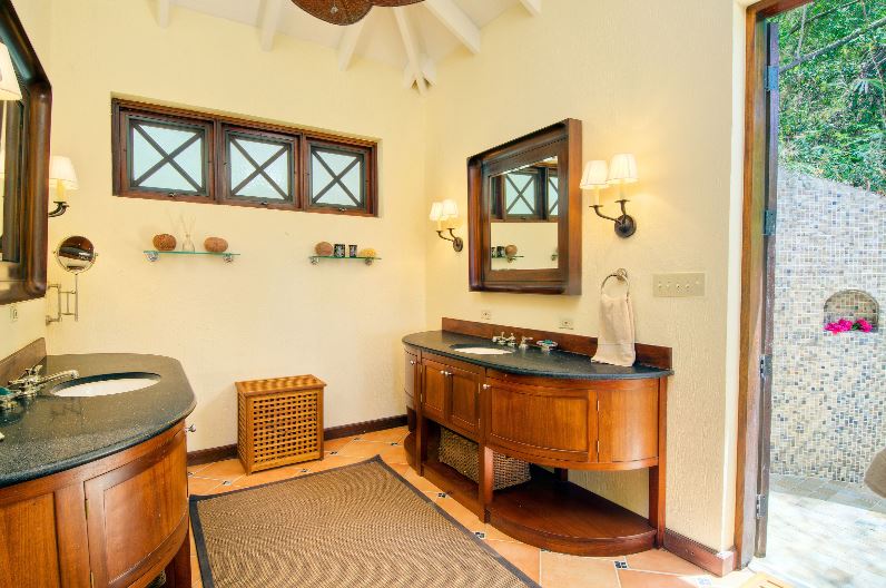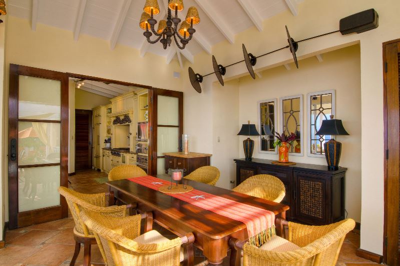 There are many private areas in which to relax with numerous indoor and outdoor dining options. The main house features a large living room and fully equipped gourmet kitchen. The master bedroom suite is located in a separate cottage to the west of the villa. Two further bedrooms are located behind the pool deck and the 4th bedroom is accessed by steps leading down adjacent to the courtyard.