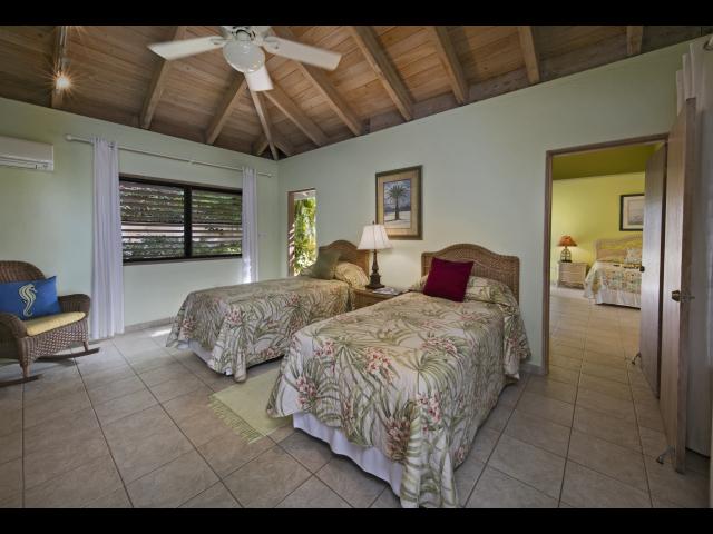 This villa sleeps up to 12 guests with 5 bedrooms, all with air-conditioning & king-size beds. Three of the bedrooms are in the main pavilion, the other two are interconnecting in another pavilion in this property. All have en suite bathrooms & ocean views. They also have private veranda’s, which gives you time to enjoy some of those island breezes during your trip. Two of the bedrooms can have Twin Beds if you prefer.