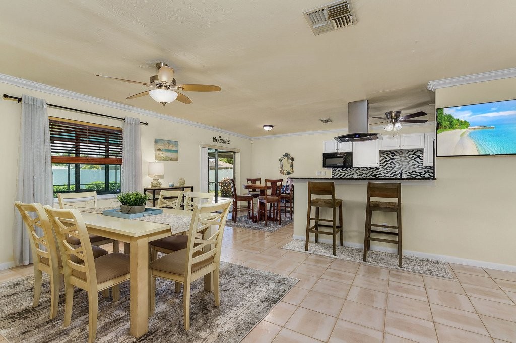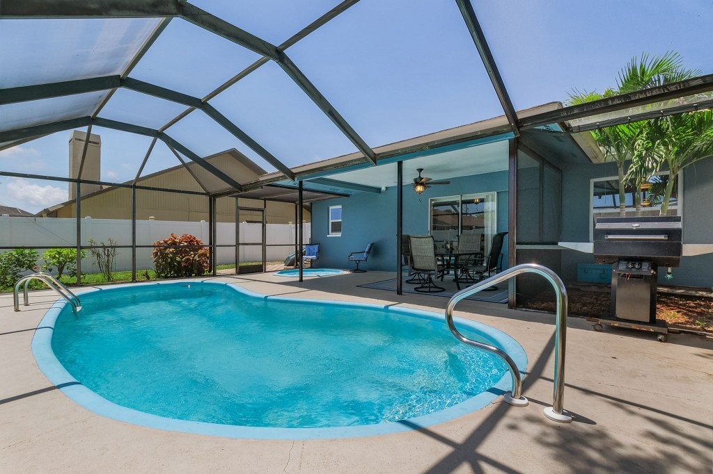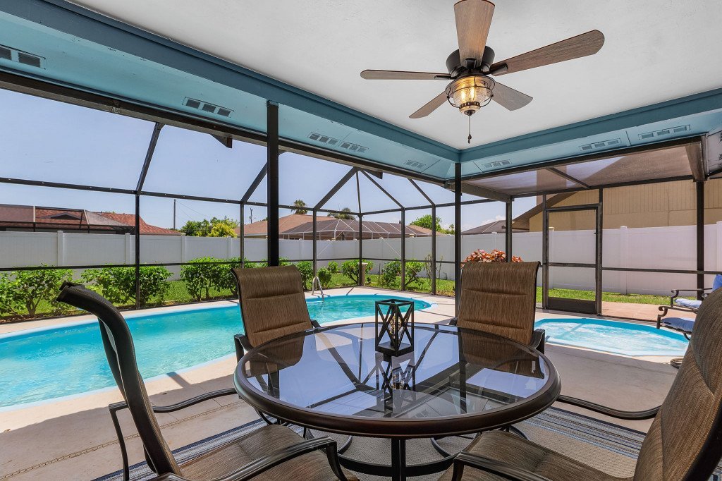 Casa Bluetique, Beautiful House rental in Cape Coral has 3 bedrooms, 2 bathrooms, 8 sleeps, 3 minimum stay House for rent in Cape Coral Florida with the amenities and near by attractions , Air Conditioning, Beach Chairs, Paper Towels, Bicycles, Deck/Patio, Free WiFi, Garage, Heated Pool, Heating, Hot Tub, Internet, Kid Friendly, Lanai, Linens Provided, Managed by Owner, Parking, Private Pool, Screen Porch, Towels Provided, Wireless Internet, Kitchen, No Smoking, Smoke detector, Carbon-monoxide detector, Blender, Microwave, Cable/Satellite TV, DVD Player, Outdoor Grill, Television, Ceiling Fans, Freezer, Oven, Toaster, Coffee Maker , Hair Dryer , Refrigerator, Washer/Dryer , Dishes & Utensils, Iron & Board , Stove, Dishwasher, Toilet Paper, ShampooLawn / garden, Standard Supplies Provided (typically enough for a 3 day stay), Conditioning Shampoo, Coffee pods, Dishwasher pods, Dish soap, Laundry Detergent, Garbage bags, Toilet paper (2/restroom), Paper towels, Hand soaps at each sink
