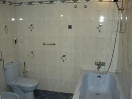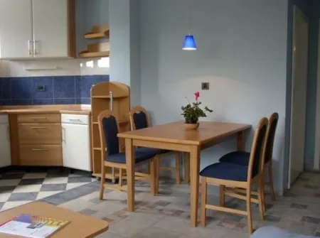 The yellow apartment is located on two floors of the apartment house (first and second floor). It consists in two double bedrooms, a living room, a kitchen and two bathrooms. In the living room there is a sofa that can be transformed in a bed so you can accommodate two children. The area of the apartment is about 90 m2. The apartment has a large terrace that is at your disposal.