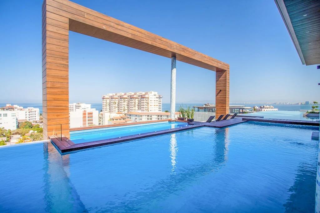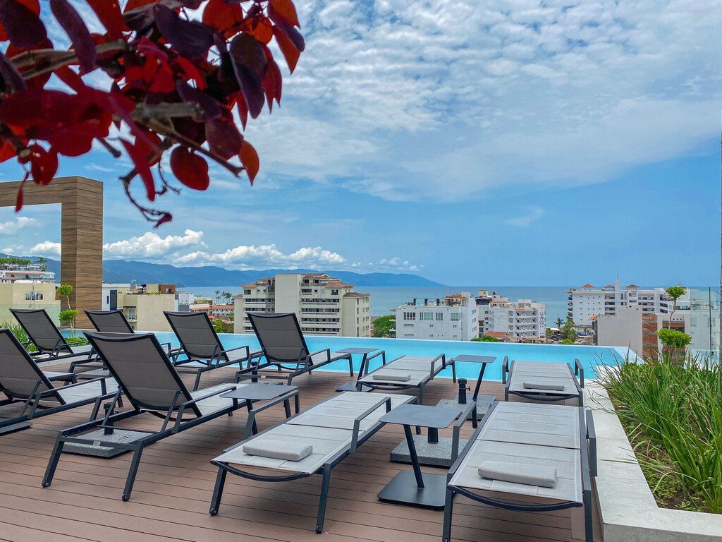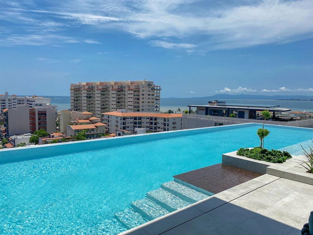 NEW 1 BR in Romantica w/rooftop pool & gym, Beautiful Studio rental in Puerto Vallarta has 1 bedrooms, 1 bathrooms, 2 sleeps, 1 minimum stay Studio for rent in Puerto Vallarta Jalisco with the amenities and near by attractions , Air Conditioning, Carbon-monoxide detector, Children allowed, Children Welcome, Communal Pool, Elevator, Fire extinguisher, Full Kitchen, Heating, Internet, Managed by Property Manager, Ocean View, Towels Provided, Washing Machine, Wireless Internet, Basic Soaps, Blender, Cable/Satellite TV, Ceiling Fans, Clothes Dryer, Coffee Grinder, Coffee Maker , Dining Area, Dishes & Utensils, Dishwasher, DVD Player, First-aid kit, Freezer, Hair Dryer , Hangers, Heater, Ice Maker, Iron & Board , Kettle, Living Room, Microwave, Outdoor Grill, Oven, Refrigerator, Shampoo, Stove, Telephone, Television, Toaster, Toilet Paper, Washer/Dryer