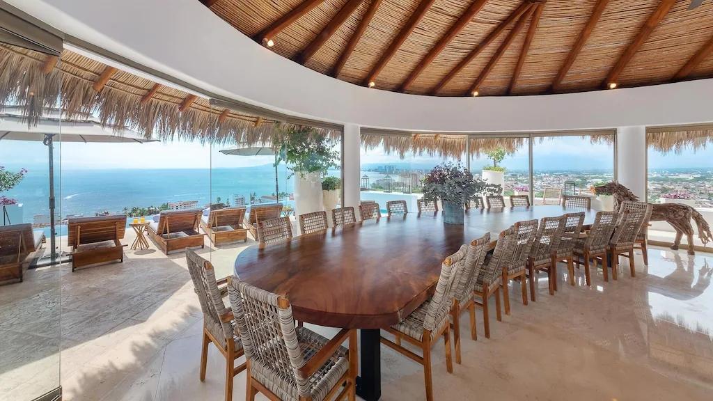 Most Spectacular Vacation Experience, Beautiful Villa rental in Puerto Vallarta has 9 bedrooms, 8.5 bathrooms, 18 sleeps, 1 minimum stay Villa for rent in Puerto Vallarta Jalisco with the amenities and near by attractions , Air Conditioning, Carbon-monoxide detector, Communal Pool, Exterior lighting, Fire extinguisher, Fireplace, Free WiFi, Game Room, Hot Tub, Kitchen, Linens Provided, No Smoking, Non-Smoking, Parking, Smoke detector, Swimming pool, Towels Provided, Washing Machine, Wireless Internet, Basic Soaps, Blender, Cable/Satellite TV, Ceiling Fans, Clothes Dryer, Coffee Grinder, Coffee Maker , Dining Area, Dishes & Utensils, Dishwasher, DVD Player, First-aid kit, Freezer, Hair Dryer , Hangers, Heater, Ice Maker, Iron & Board , Kettle, Living Room, Microwave, Outdoor Grill, Oven, Refrigerator, Shampoo, Stove, Telephone, Television, Toaster, Toilet Paper, Washer/Dryer