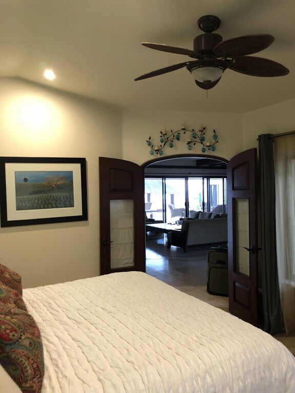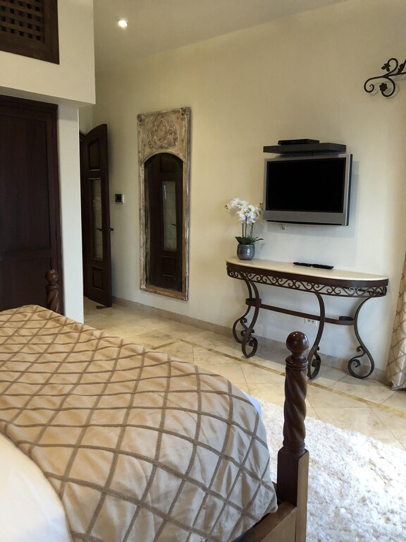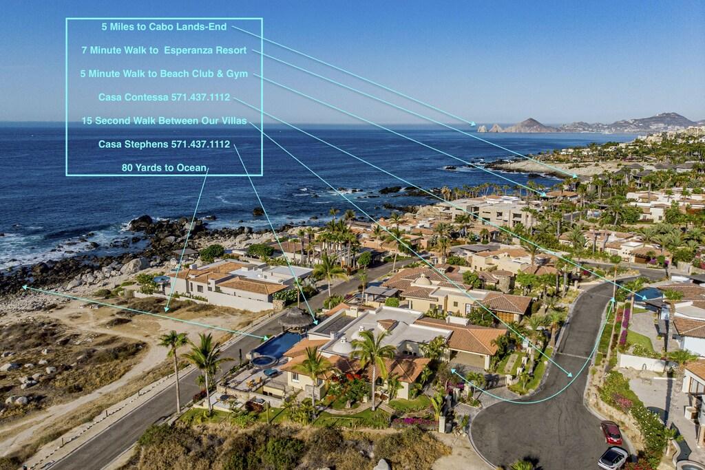 Casa Contessa is a professionally designed and built villa with guest privacy in mind with all 5 bedrooms on one level. Duel masters suites are on opposite sides of the villa with no connected bedrooms. Both masters offer walk-in closets, hand-hammered copper tubs, Smart TV's w/USA Network Channels & AppleTV. All guest suites have individually dedicated A/C & bathrooms w/private custom showers. Casa Contessa is located on a quiet cul-de-sac street with no connected neighboring homes on the West, North, and South sides of the property. Contessa's close proximity to the Esperanza Resort and walk-to amenities including restaurants, our beach-club & gym, groomed walking trail, 1/2 court basketball hoop, tennis courts & new pickle ball courts.