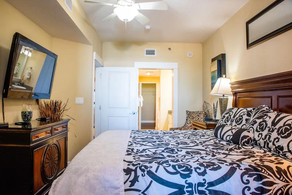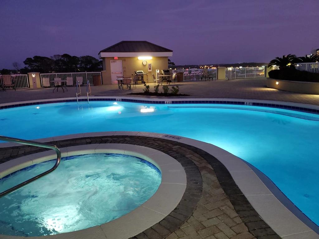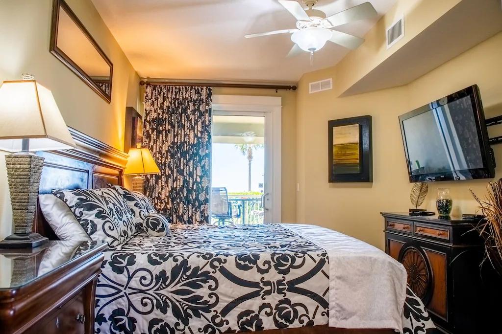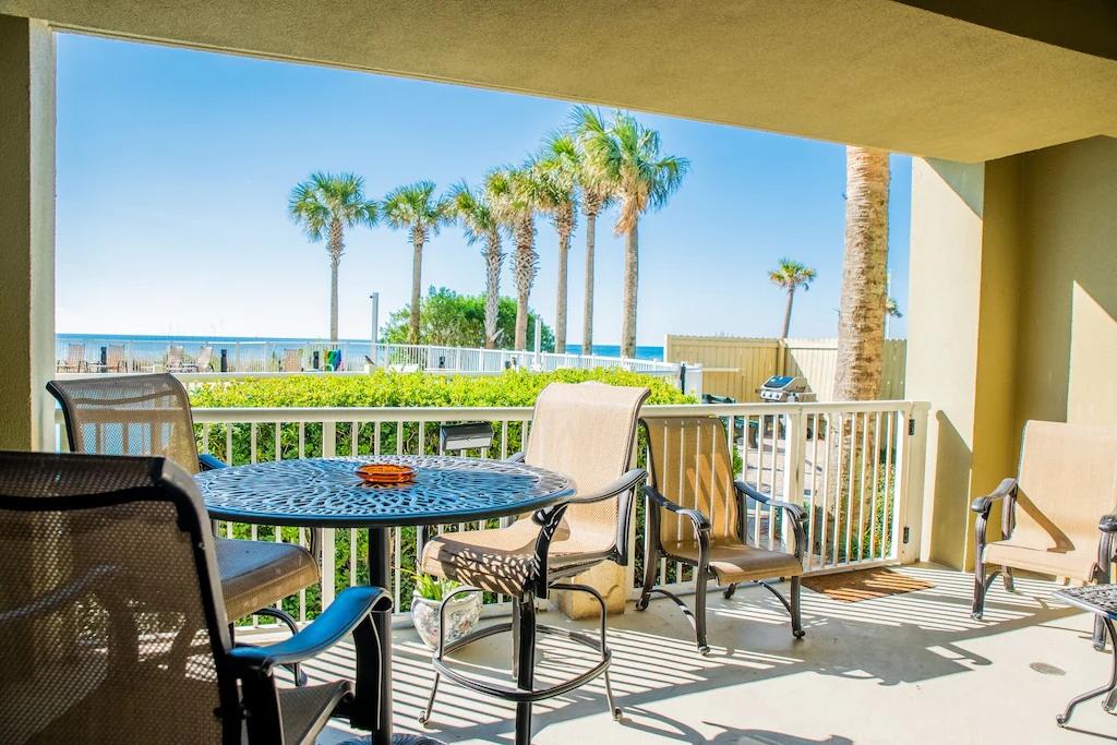 GRAND PANAMA 2BR/2BA, 1st-floor with gated Patio to beach/hot tub! Pet-friendly, Beautiful Resort rental in Panama City Beach has 2 bedrooms, 2 bathrooms, 8 sleeps, 1 minimum stay Resort for rent in Panama City Beach Florida with the amenities and near by attractions , Air Conditioning, Paper Towels, Beach View, Bicycles, Deck/Patio, Elevator, Fitness Room , Free WiFi, Full Kitchen, Garage, Heated Pool, Heating, Hot Tub, Internet, Kid Friendly, Linens Provided, Managed by Owner, Ocean View, Oceanfront, Parking, Pet Friendly, Porch / Veranda, Towels Provided, Water View, Waterfront, Wheelchair Accessible, Wireless Internet, Washing Machine, Kitchen, Children Welcome, Swimming pool, Fire extinguisher, Children allowed, No Smoking, Beachfront, Smoke detector, Carbon-monoxide detector, Exterior lighting, Blender, Microwave, Cable/Satellite TV, Outdoor Grill, Television, Ceiling Fans, Freezer, Oven, Toaster, Coffee Maker , Hair Dryer , Refrigerator, Washer/Dryer , Dishes & Utensils, Iron & Board , Stove, Dishwasher, Clothes Dryer, Ice Maker, Dining Area, Basic Soaps, Toilet Paper, Living Room, HangersLawn/Garden, Dishes & utensils for kids, Dining table, Outdoor HEATED Pool, Spa whirlpool, Pool, Outdoor Furniture, Golf nearby, Water Sports Gear within walking distance, Smart TV, Deadbolt lock W/peephole. Resort Minimum Age Limit for Renters 25