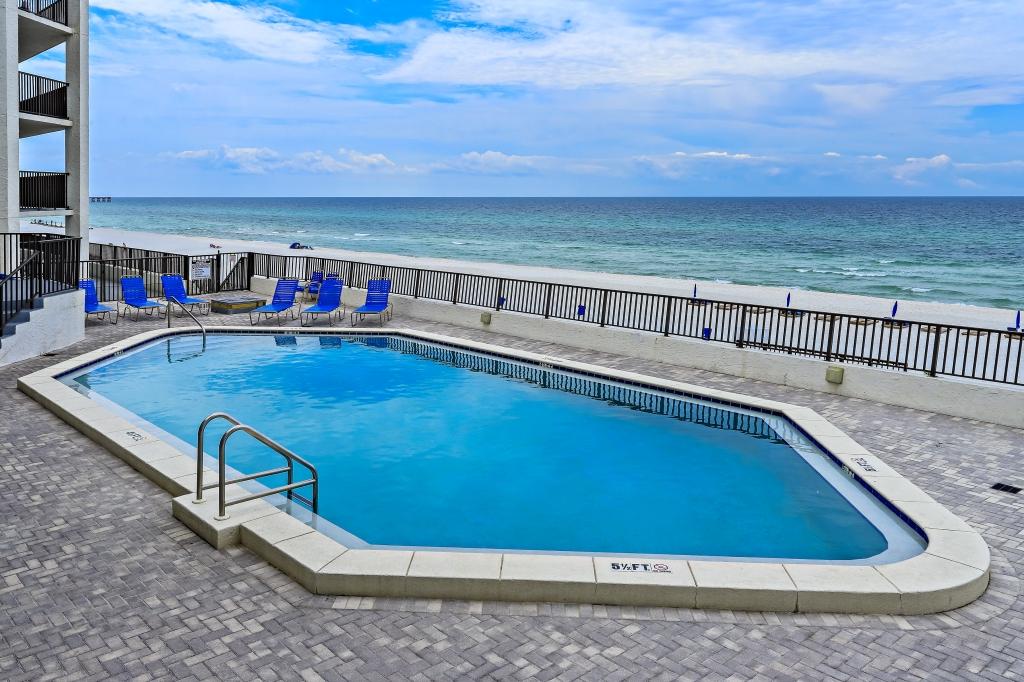 The condo complex has a beautiful heated pool through the winter Dec-March (unless the weather is very warm). It's located on the 2nd floor, raised at the perfect height for seeing the ocean and watching sunsets while in the hot tub. And since it's a small complex of only 84 units, it's quieter.