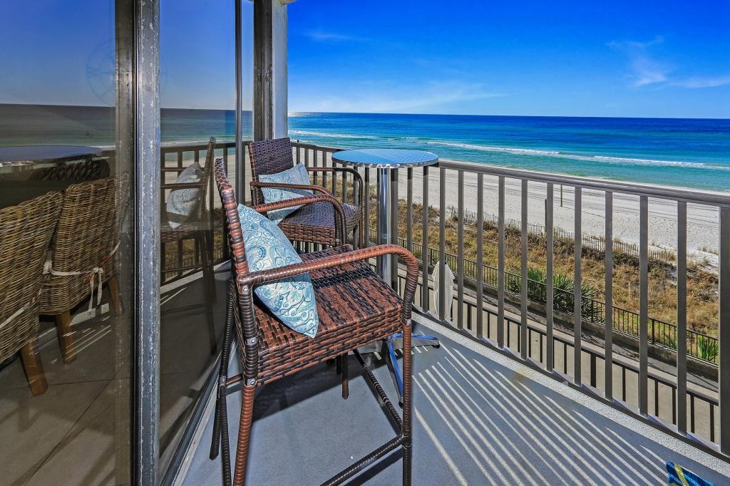 This high-end coastal themed home offers sweeping ocean views from nearly every room at the perfect 3rd floor location. Listen to the crashing waves as you sip coffeee on your private balcony & relax in the elevated heated swimming pool. The spacious ope floor plan condo has a giant floor to ceiling windows and isn't your typical "shot gun" narrow condo! It offers a wide and spacious view of the gulf while you cook and sit in the living room or eat at the beautiful dining table. Completely refurnished in 2022.