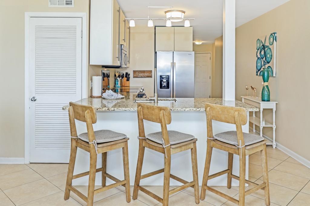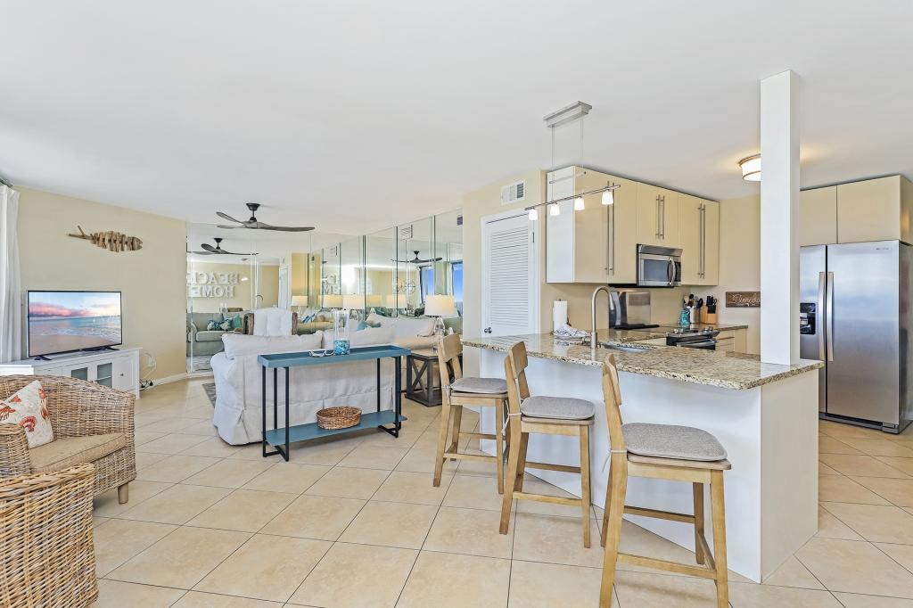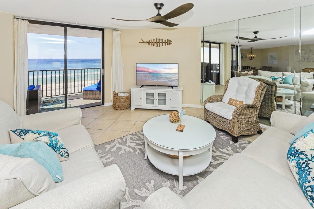 This unit is not "gunshot" and boxy as most condos are but is spread out to offer wide views of the ocean and a homey feel. It is tastefully decorated in neutral sea-inspired colors to help you feel on vacation at the sea.