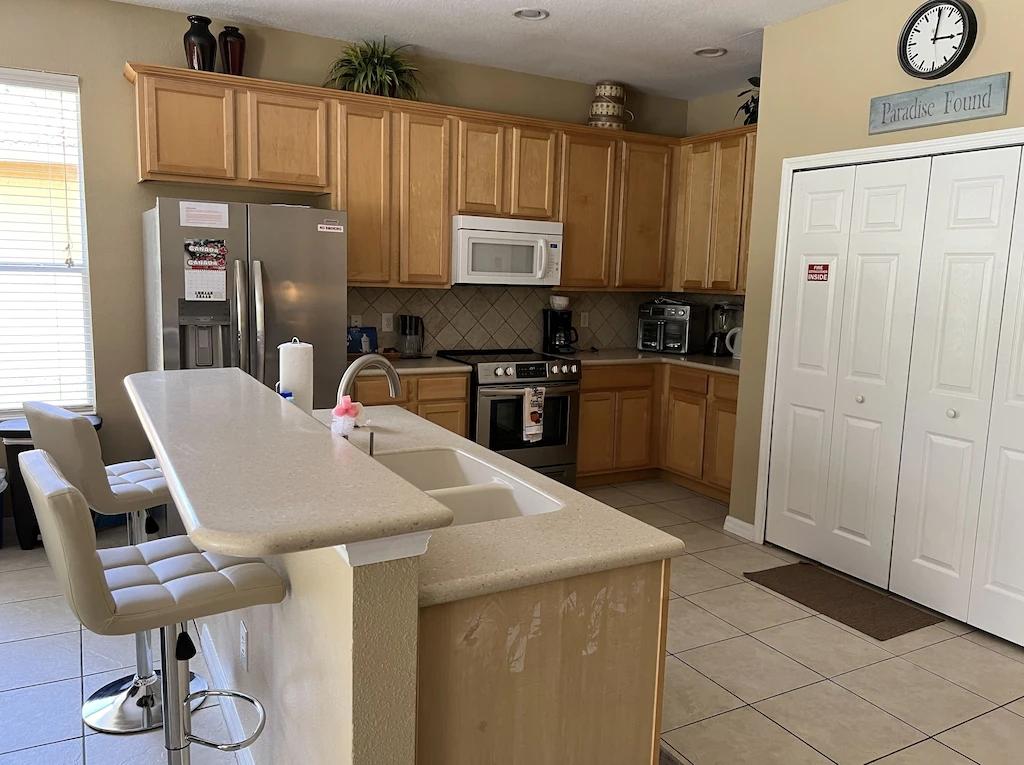 *NEW* The Sunseeker, Beautiful House rental in Orlando has 5 bedrooms, 5 bathrooms, 10 sleeps, 5 minimum stay House for rent in Orlando Florida with the amenities and near by attractions , Air Conditioning, Beach Chairs, Children allowed, Children Welcome, Deck/Patio, Free WiFi, Game Room, Heated Pool, Heating, Internet, Kitchen, Linens Provided, No parties/events, No Pets Allowed, No Smoking, Parking, Ping Pong Table, Private Pool, Towels Provided, Washing Machine, Wireless Internet, Cable/Satellite TV, Clothes Dryer, Coffee Maker , Dining Area, Dishes & Utensils, Dishwasher, DVD Player, Hair Dryer , Ice Maker, Iron & Board , Kettle, Living Room, Microwave, Outdoor Grill, Oven, Refrigerator, Stove, Telephone, Television, Toaster, Toilet PaperDining table, Kitchen island, Outdoor Pool, Spa whirlpool, Outdoor Furniture, Books, Foosball, Smart TV, Resort (Gated community with a local clubhouse), Minimum Age Limit for Renters: 21, Parking (Driveway can accommodate two vehicle at least)