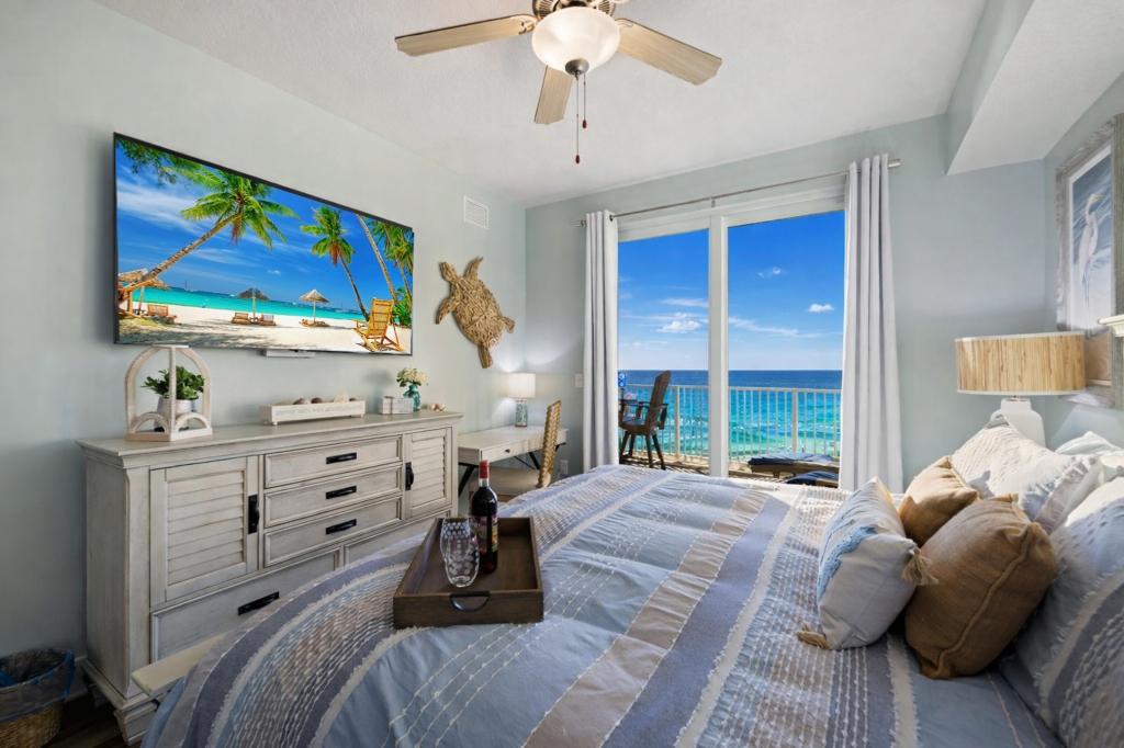 Calypso 3-1411 - Beach N View is a New (opened in 2021) luxury 3 bedroom, 2 bathroom, ocean view, condo located in Panama City Beach next to the Embassy Suite Convention Center and Pier Park. Beach N View sleeps 9 guests comfortably. Enjoy spectacular 14th-floor gulf/sunset/pier views from your private balcony! It has the best sunsets I have ever seen. Walking distance to all the shops and restaurants at Pier Park. Huge heated resort pool, hot tub, fire pit, tikki bar, and restaurant.
