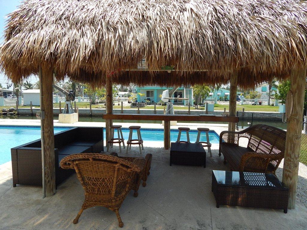 Our Island Thing, Beautiful House rental in Big Pine Key has 4 bedrooms, 2 bathrooms, 8 sleeps, 28 minimum stay House for rent in Big Pine Key Florida with the amenities and near by attractions , Air Conditioning, Balcony, Deck/Patio, Dock/Boat Slip, Game Room, Heating, Internet, Kitchen, Linens Provided, Parking, Private Pool, Towels Provided, Waterfront, Cable/Satellite TV, Ceiling Fans, Dishes & Utensils, Dishwasher, DVD Player, Freezer, Hair Dryer , Iron & Board , Microwave, Refrigerator, Stove, Telephone, Television, Toaster, Washer/Dryer Boating, Grocery Store, Scuba Diving, Deep Sea Fishing, Kayaking, Snorkeling, Golf, Miniature Golf, Tennis, Tiki Hut
