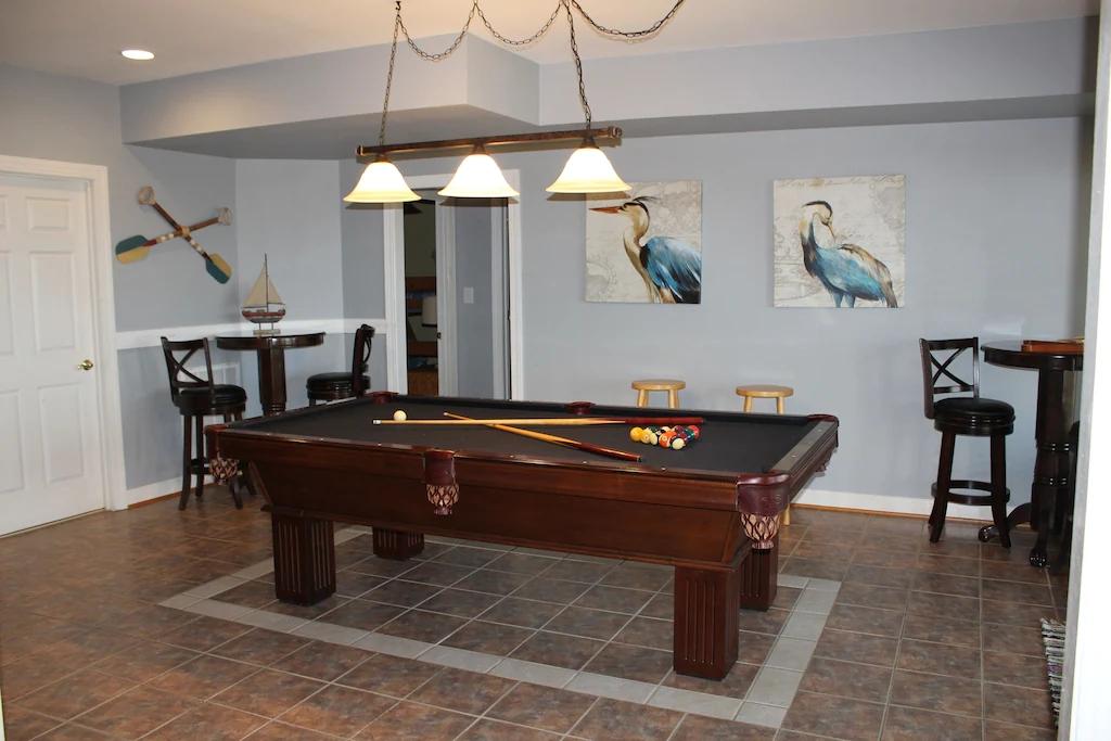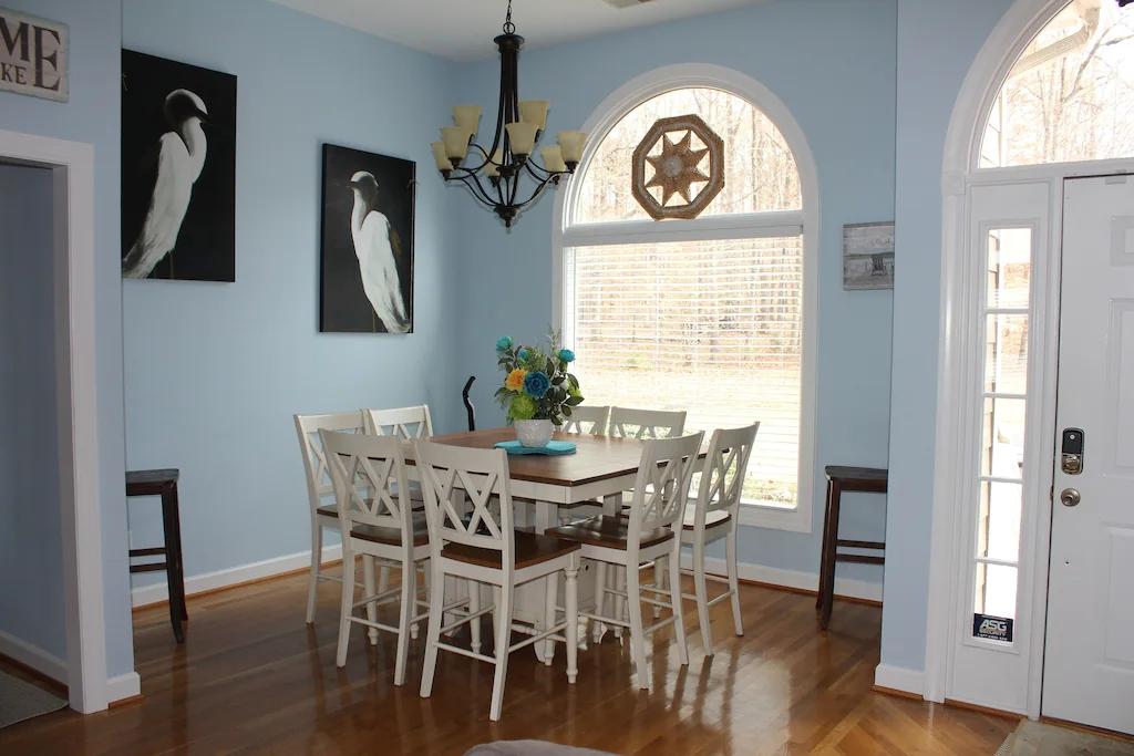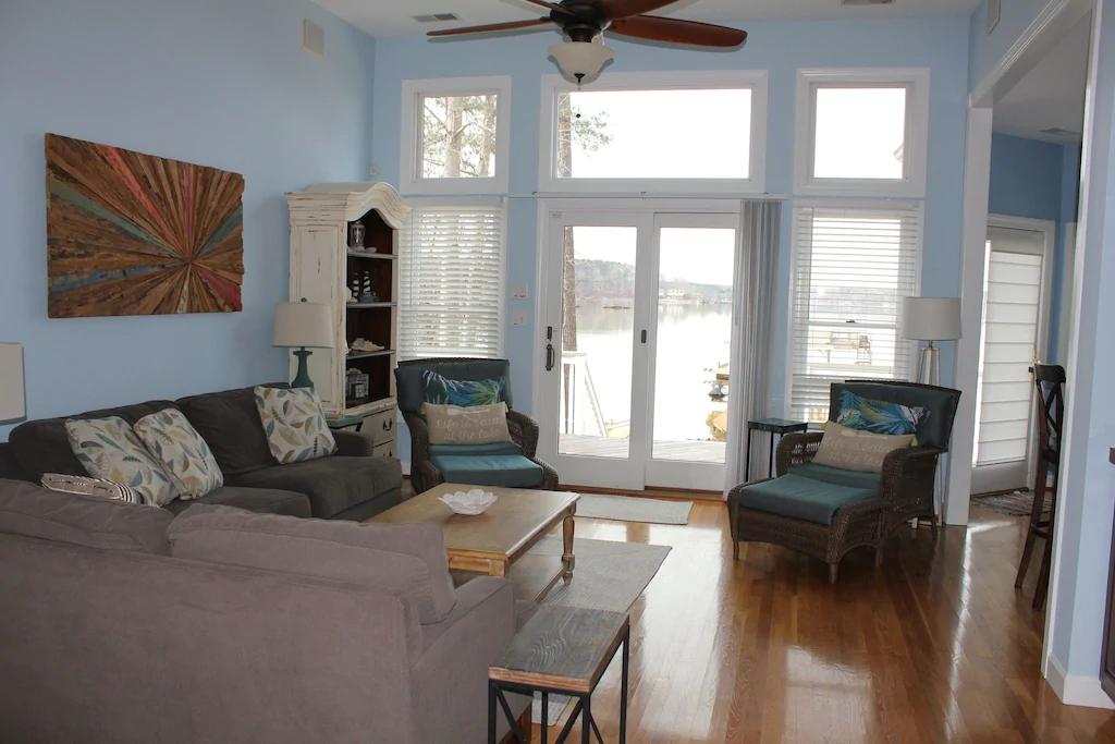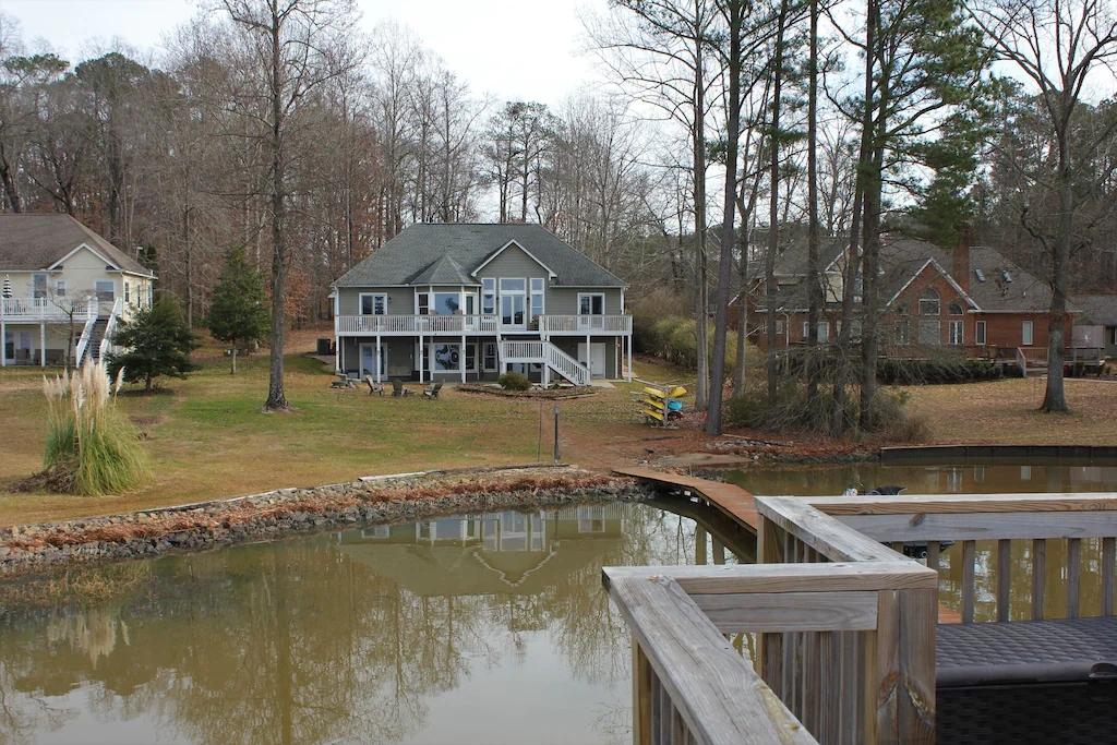Stunning sunset views!!, Beautiful House rental in North Carolina has 5 bedrooms, 4 bathrooms, 12 sleeps, 1 minimum stay House for rent in North Carolina United States of America with the amenities and near by attractions , Air Conditioning, Deck/Patio, Exterior lighting, Free WiFi, Game Room, Heating, Internet, Kayak / Canoe, Kitchen, Lake View, Linens Provided, No parties/events, No Pets Allowed, No Smoking, Parking, Pool Table, Smoke detector, Towels Provided, Washing Machine, Water View, Waterfront, Wireless Internet, Blender, Clothes Dryer, Coffee Maker , Dining Area, Dishes & Utensils, Dishwasher, DVD Player, Hair Dryer , Ice Maker, Iron & Board , Living Room, Microwave, Outdoor Grill, Oven, Refrigerator, Stove, Telephone, Television, ToasterLawn/Garden, Wifi speed 50+ Mbps, Dishes & utensils for kids, Dining table, Outdoor Furniture, Fire pit, Foosball, Smart TV, Video Library(Tons of DVD's to choose from for a rainy day), Deadbolt lock, Emergency exit route, Minimum Age Limit for Renters: 25
