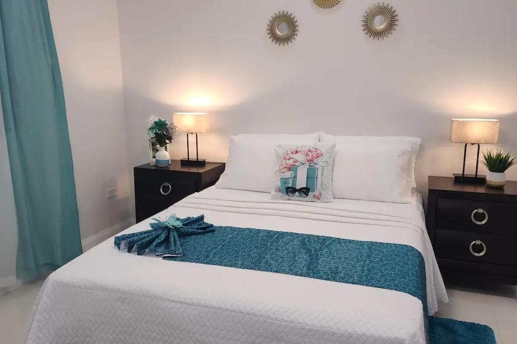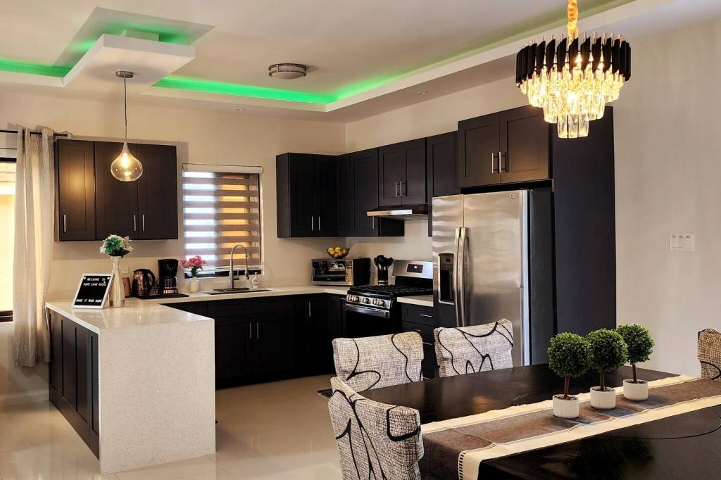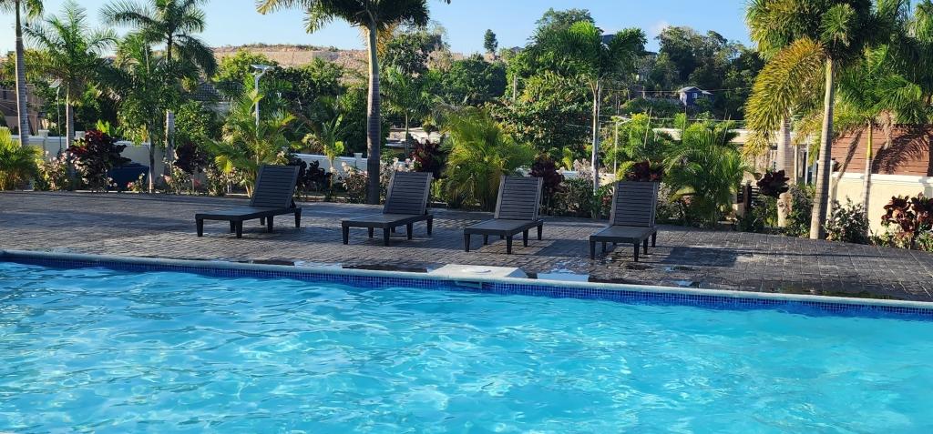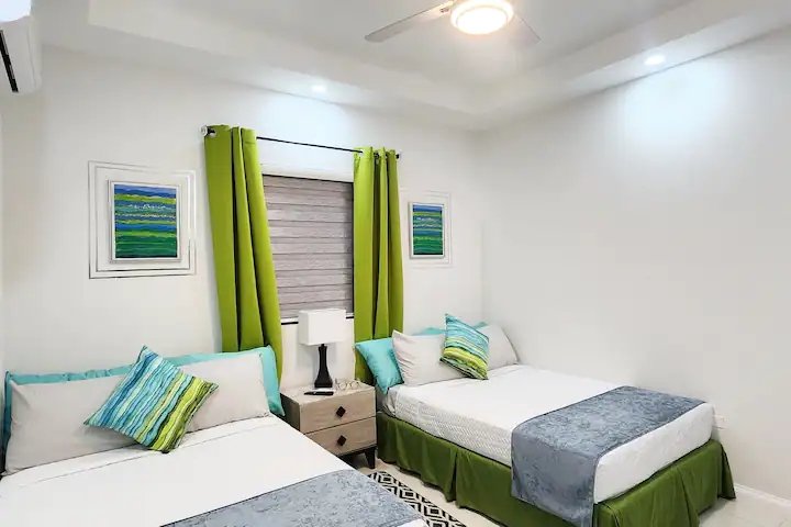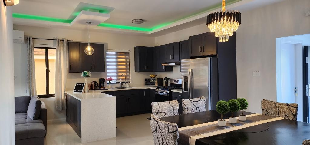 Cove Luxe Oasis, Beautiful Villa rental in Ocho Rios has 3 bedrooms, 3 bathrooms, 6 sleeps, 3 minimum stay Villa for rent in Ocho Rios Jamaica with the amenities and near by attractions , Air Conditioning, Paper Towels, Communal Pool, Deck/Patio, Fitness Room , Free WiFi, Full Kitchen, Internet, Kid Friendly, Linens Provided, Managed by Owner, No Pets Allowed, Non-Smoking, Parking, Porch / Veranda, Towels Provided, Wireless Internet, Kitchen, Children Welcome, Swimming pool, Fire extinguisher, Children allowed, No Smoking, No parties/events, Smoke detector, Carbon-monoxide detector, Exterior lighting, Mountain View, Carbon monoxide detector, Outdoor Pool, Blender, Microwave, Cable/Satellite TV, Television, Ceiling Fans, Freezer, Oven, Toaster, Coffee Maker , Hair Dryer , Refrigerator, Dishes & Utensils, Iron & Board , Stove, First-aid kit, Ice Maker, Dining Area, Basic Soaps, Toilet Paper, Living Room, Kettle, Shampoo, Hangers, Microwave/Air Fryer, Swimming, Water sports, Duty free shops, Health/beauty spa, Horseback riding, Shopping, fitness center, laundromatDedicated workspace, Shared pool and gym–available all year, Public or shared beach access, Free driveway parking on premises – 1 space, Security cameras on property Self-check-in with lock box