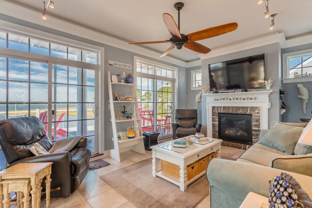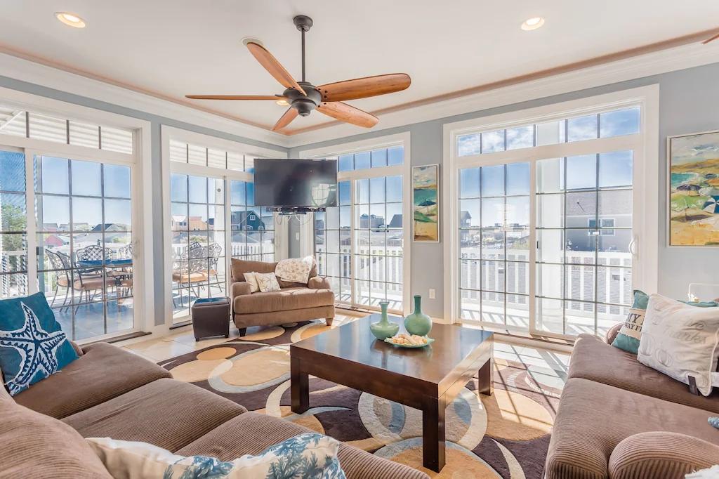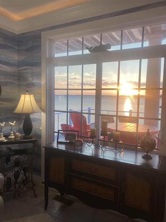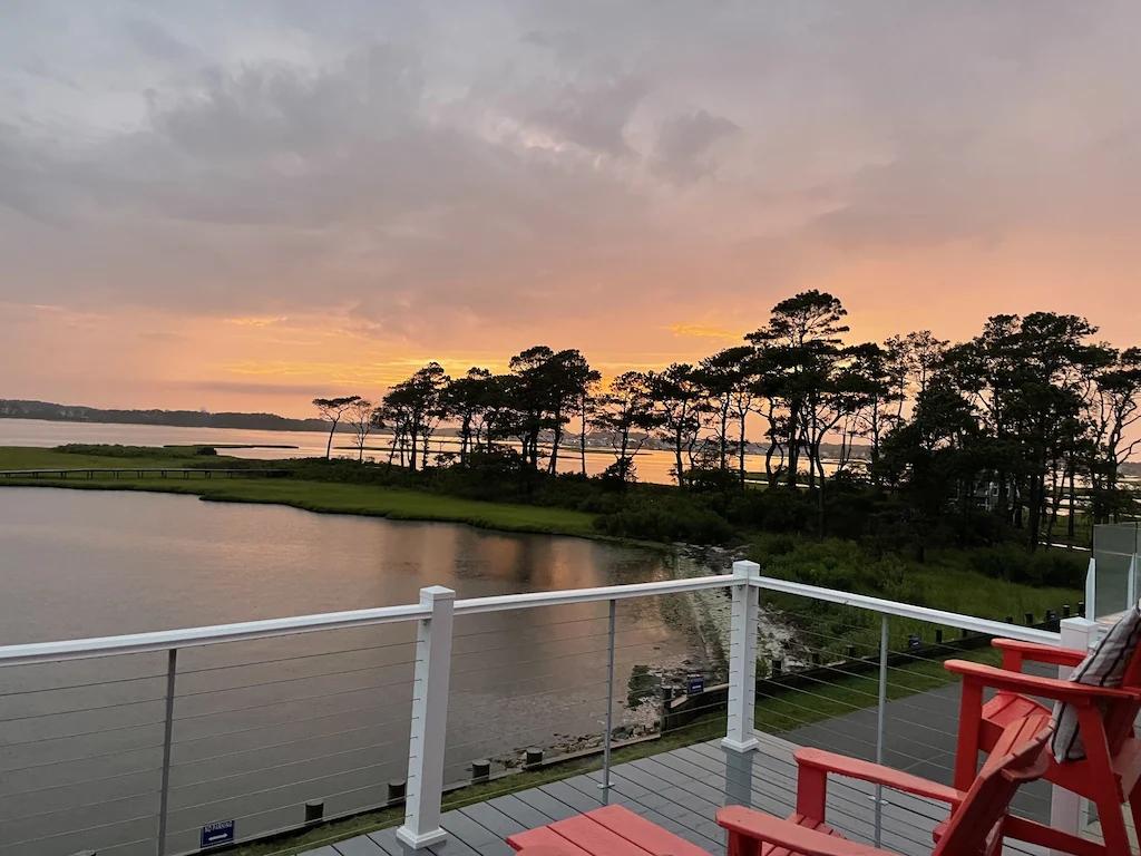 Gorgeous Sunsets on Bay in Beautiful 7 BR Home 1.5 Mi to Beach, Beautiful House rental in Fenwick Island has 7 bedrooms, 6.5 bathrooms, 16 sleeps, 7 minimum stay House for rent in Fenwick Island Delaware with the amenities and near by attractions , Air Conditioning, Beach Chairs, Bicycles, Children allowed, Communal Pool, Elevator, Exterior lighting, Fire extinguisher, Fireplace, Garage, Heating, Internet, Kayak / Canoe, Kitchen, No parties/events, No Pets Allowed, No Smoking, Paper Towels, Parking, Smoke detector, Swimming pool, Washing Machine, Water View, Waterfront, Wireless Internet, Blender, Cable/Satellite TV, Clothes Dryer, Coffee Grinder, Coffee Maker , Dining Area, Dishes & Utensils, Dishwasher, DVD Player, First-aid kit, Hair Dryer , Heater, Ice Maker, Iron & Board , Kettle, Microwave, Outdoor Grill, Oven, Refrigerator, Shampoo, Stove, Telephone, Television, Toaster, Washer/Dryer Minimum age of primary renter: 24, Max guests: 16, Paid wifi, Games for Kids, Baby Gate, Travel crib, Books for kids, Pantry Items, Dishes & utensils for kids, Dining table, Kitchen island, Fire pit, Games, Books, Stereo, Smart TV, Deadbolt lock, Fenced yard, Near the ocean