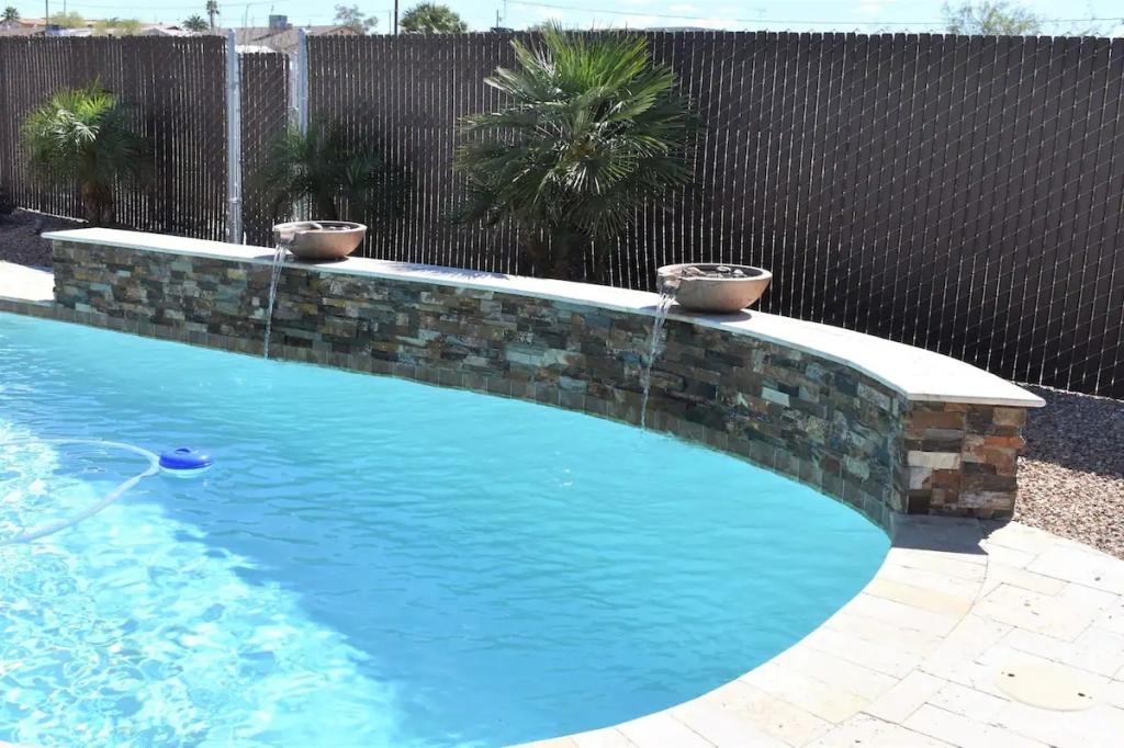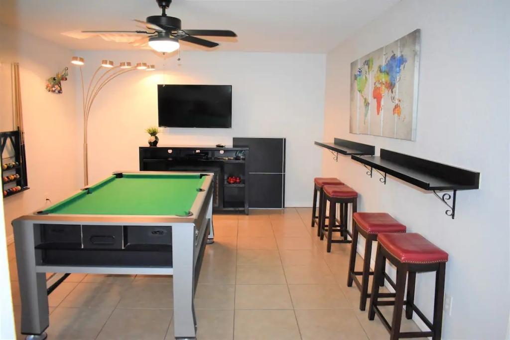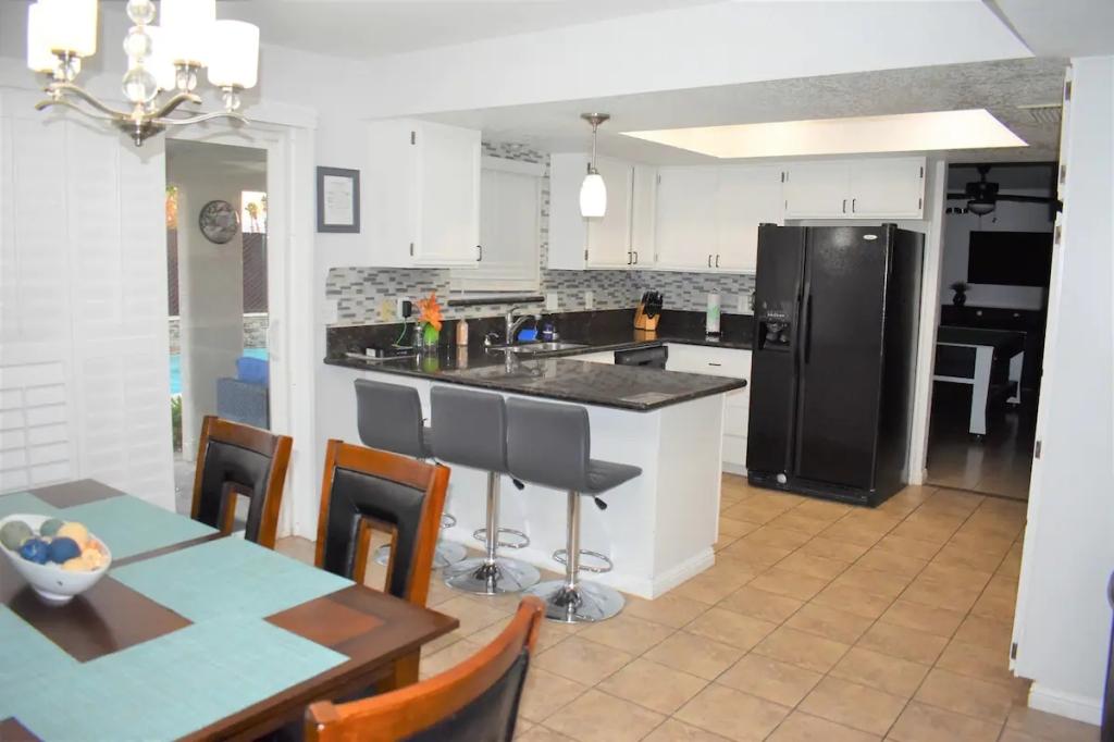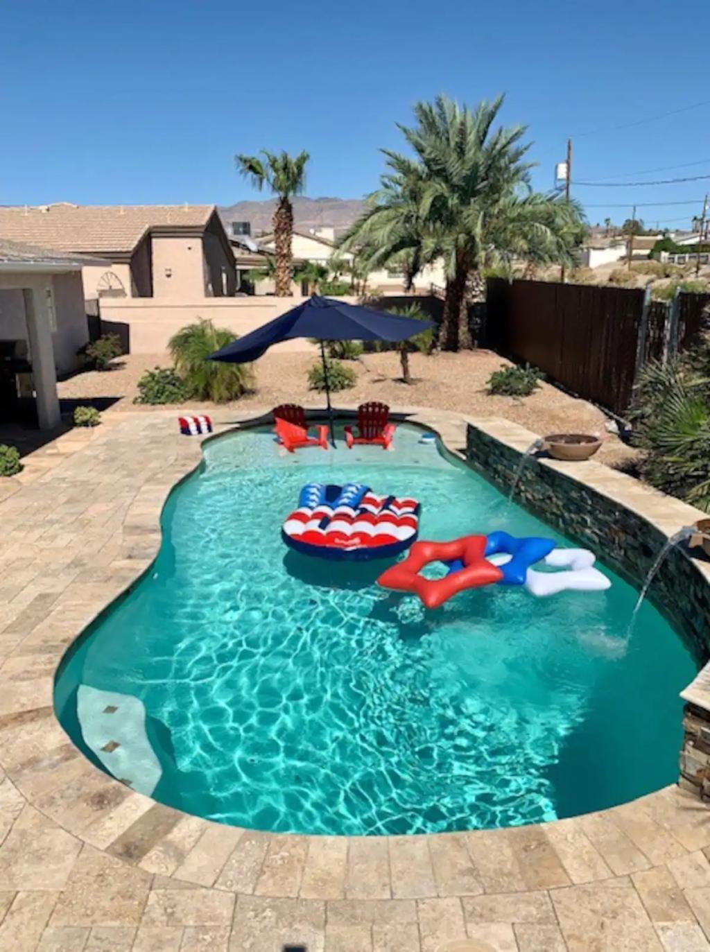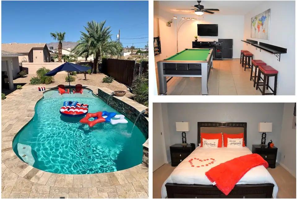 Clean & Contemporary Pool Home -WIFI, Air Hockey,, Beautiful House rental in Lake Havasu City has 3 bedrooms, 2 bathrooms, 6 sleeps, 1 minimum stay House for rent in Lake Havasu City Arizona with the amenities and near by attractions , Air Conditioning, Fire extinguisher, Free WiFi, Heating, Hot Tub, Kitchen, Parking, Pet Friendly, Private Pool, Blender, Cable/Satellite TV, Ceiling Fans, Coffee Maker , Dishwasher, First-aid kit, Freezer, Hair Dryer , Hangers, Iron & Board , Microwave, Oven, Refrigerator, Toaster, Toilet Paper, Washer/Dryer Pool view, Bathtub, Cleaning products, Hot water, Towels, bed sheets, soap, Bed linens, Extra pillows and blankets, Ping pong table, Pool table, Smoke alarm, Cooking basics, Dishes and silverware, Electric stove, Hot water kettle, Wine glasses, Baking sheet, Barbecue utensils, Dining table, Private , BBQ grillentrance, Backyard, Outdoor furniture, Free street parking, Free parking on premises