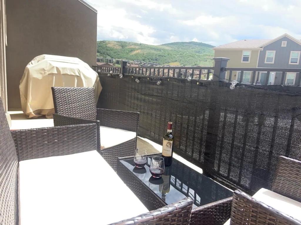 My Utah ski-and-golf retreat- Sleeps 10!, Beautiful Townhome rental in Heber City has 4 bedrooms, 3.5 bathrooms, 10 sleeps, 1 minimum stay Townhome for rent in Heber City Utah with the amenities and near by attractions , Air Conditioning, Balcony, Paper Towels, Fireplace, Free WiFi, Full Kitchen, Garage, Heating, Internet, Kitchenette, Linens Provided, Managed by Owner, No Pets Allowed, Non-Smoking, Parking, Towels Provided, Wireless Internet, Washing Machine, Kitchen, Fire extinguisher, No Smoking, No parties/events, Smoke detector, Carbon-monoxide detector, Exterior lighting, Mountain View, Blender, Microwave, Outdoor Grill, Television, Ceiling Fans, Freezer, Oven, Toaster, Coffee Maker , Hair Dryer , Refrigerator, Washer/Dryer , Dishes & Utensils, Iron & Board , Stove, Dishwasher, First-aid kit, Clothes Dryer, Ice Maker, Dining Area, Basic Soaps, Toilet Paper, Living Room, Shampoo, Hangers, Microwave/Air Fryer, Ironing Board, Waffle IronBath, Shampoo, Hot water, Free washer – In unit, Towels, bed sheets, Bed linen, Extra pillows and blankets, Room-darkening shades, Iron, HDTV with Amazon Prime Video, Hulu, Netflix, Games console, Cot, Travel cot, Fireplace guards, Window guards, Indoor fireplace: electric, Smoke alarm, Carbon monoxide alarm, Cooking basics, Private entrance, BBQ grill, Private patio or balcony, Free parking on premises, Self check-in