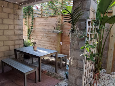 $ Romantic Renovated Secret Garden $ Marble Floors & Bath – DT Just Half Mile - Beach Only 3, Beautiful House rental in St. Augustine Beach has 1 bedrooms, 2 bathrooms, 4 sleeps, 2 minimum stay House for rent in St. Augustine Beach Florida with the amenities and near by attractions , Air Conditioning, Carbon monoxide detector, Fire extinguisher, Full Kitchen, Heating, Internet, Kid Friendly, Managed by Property Manager, No Pets Allowed, Parking, Smoke detector, Washing Machine, Wheelchair Accessible, Clothes Dryer, Coffee Maker , Dishwasher, Hair Dryer , Microwave, Mini Refrigerator, Outdoor Grill, Oven, Stove, Television, ToasterChilds Highchair, Minimum Age Limit for Renters