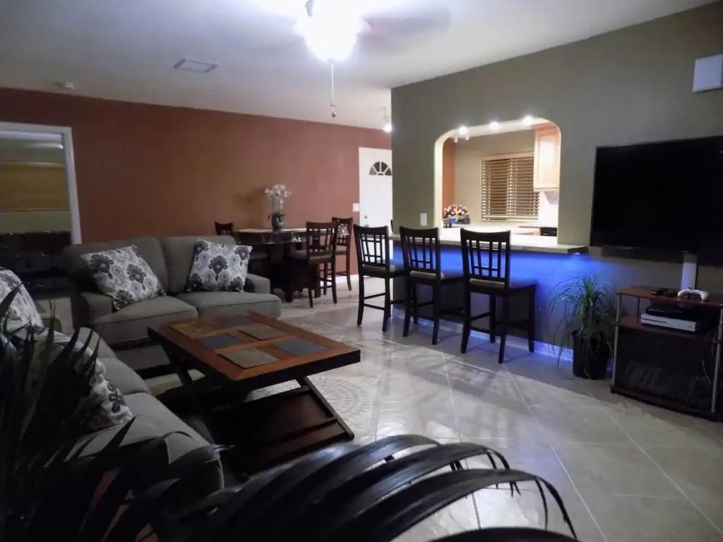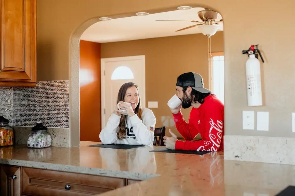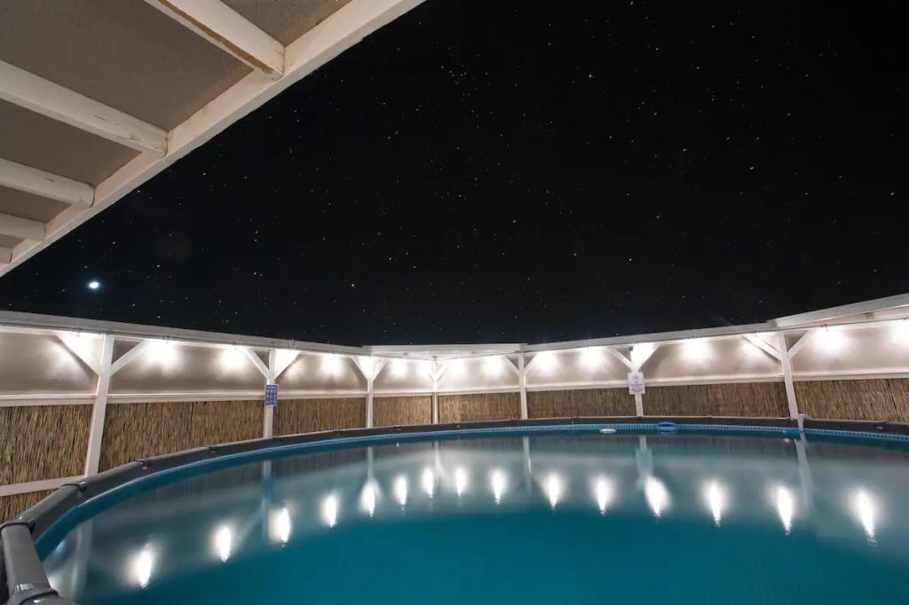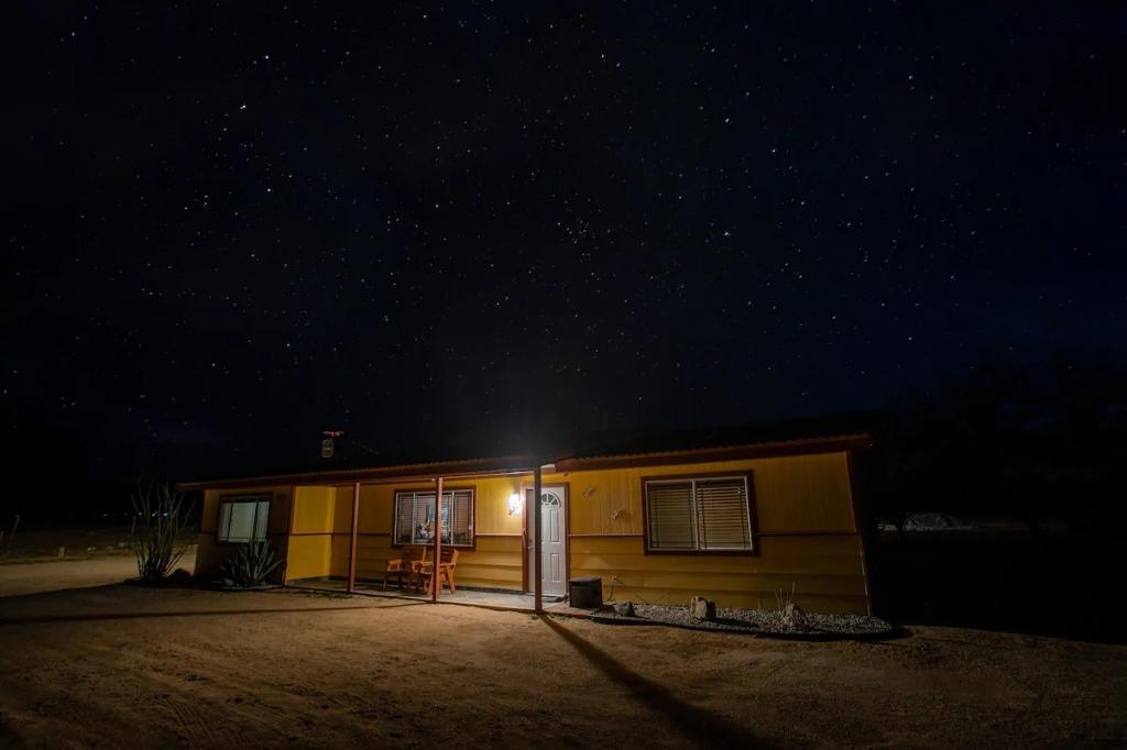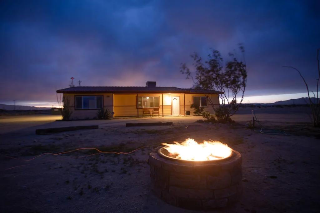 Sunlight Retreat - 2.5 Acres, Pool, Spa, Desert, Beautiful House rental in Twentynine Palms has 3 bedrooms, 2 bathrooms, 12 sleeps, 1 minimum stay House for rent in Twentynine Palms California with the amenities and near by attractions , Air Conditioning, Balcony, Carbon monoxide detector, Deck/Patio, Fire extinguisher, Free WiFi, Heating, Hot Tub, Kitchen, Linens Provided, Parking, Pet Friendly, Smoke detector, Towels Provided, Basic Soaps, Coffee Maker , Dining Area, Dishwasher, DVD Player, First-aid kit, Hair Dryer , Hangers, Iron & Board , Microwave, Oven, Refrigerator, Shampoo, Toilet Paper, Washer/Dryer Desert view, Park view, Valley view, Hot water, Extra pillows and blankets, Ethernet connection, Cooking basics, Dishes and silverware, Samsung stainless steel electric cooker, Fire pit, Outdoor furniture, Outdoor dining area, BBQ grill, Free parking on premises, Private outdoor pool – available all year open 24 hours, Private hot tub, Long-term stays allowed(Allow stays of 28 days or more)