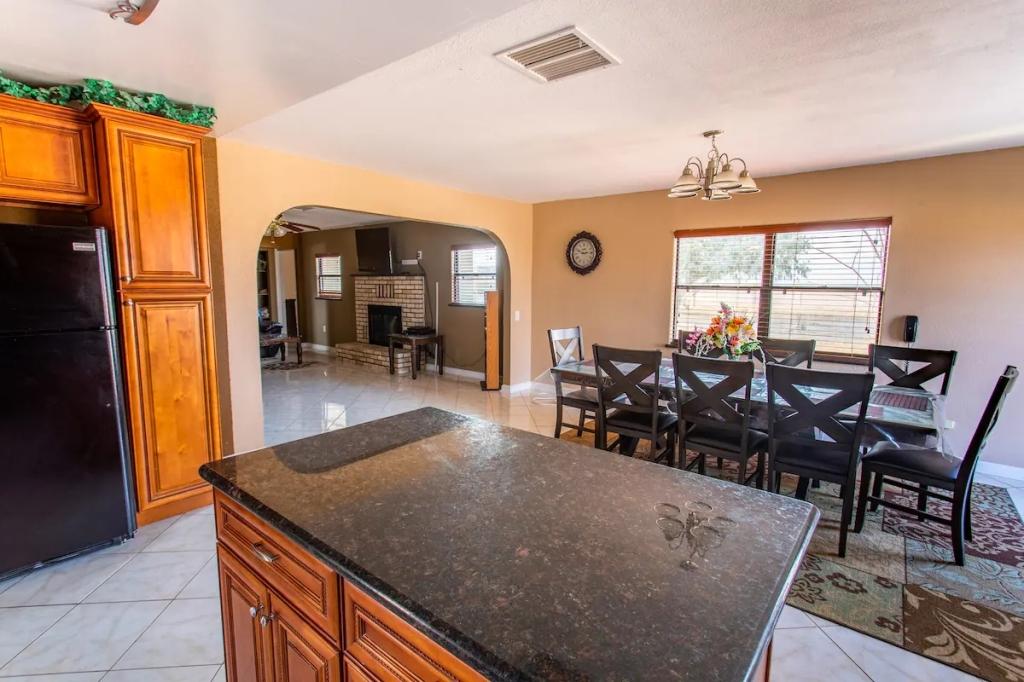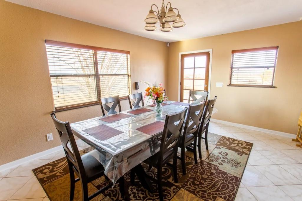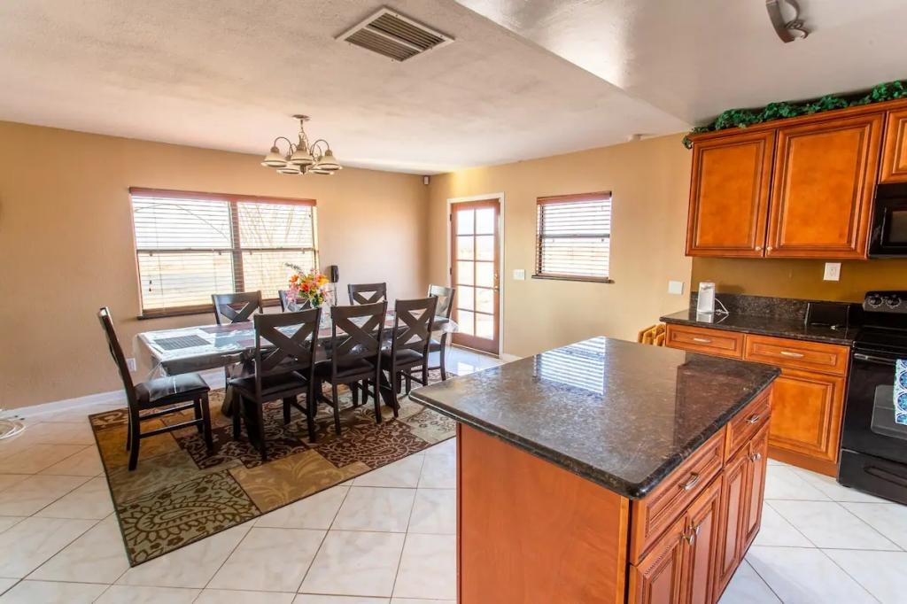 Desert Gem - 5 Acres, Arcade, Pool, Spa, King Bed, Beautiful House rental in Wonder Valley has 3 bedrooms, 1 bathrooms, 6 sleeps, 1 minimum stay House for rent in Wonder Valley California with the amenities and near by attractions , Balcony, Carbon monoxide detector, Deck/Patio, Fire extinguisher, Free WiFi, Heating, Hot Tub, Kitchen, Linens Provided, Outdoor Pool, Parking, Pet Friendly, Ping Pong Table, Pool Table, Smoke detector, Towels Provided, Basic Soaps, Blender, Cable/Satellite TV, Ceiling Fans, Coffee Maker , Dining Area, Dishwasher, First-aid kit, Freezer, Hair Dryer , Hangers, Iron & Board , Kettle, Microwave, Oven, Refrigerator, Shampoo, Toaster, Toilet Paper, Washer/Dryer , Desert view, Dedicated workspace, Park view, Security cameras on property, Desert view, Park view, Valley view, Cleaning products, Redkin conditioner, Dial body soap, Hot water, bed sheets, Bed linen, Extra pillows and blankets, Room-darkening shades, Clothes storage: wardrobe and chest of drawers, Ethernet connection, In garage Bluetooth sound system, Games console: Xbox 360, Cot – available upon request, Central air conditioning, Indoor fireplace: wood-burning, Security cameras on property, Dedicated workspace, Cooking basics(Pots and pans- oil- salt and pepper), Dishes and silverware(Bowls- chopsticks- plates- cups etc.), Electric cooker, Baking sheet, Dining table, Private patio or balcony, Private back garden – Fully fenced, Fire pit, Outdoor furniture, Hammock, Outdoor dining area, BBQ grill, Sun loungers, Free parking on premises, Free on-street parking, Private outdoor pool – available all year open 24 hours, Private hot tub, Single level home, Pets allowed, Long-term stays allowed(Allow stays of 28 days or more), Self check-in, Keypad, Cleaning available during stay